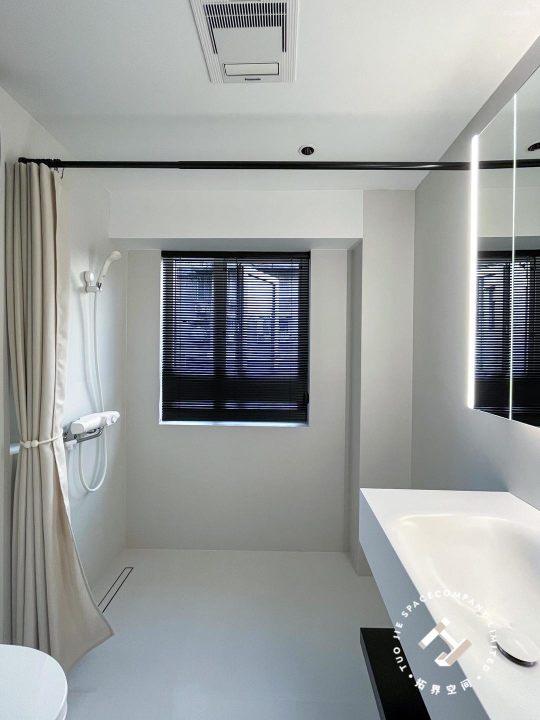 与其它空间不一样的是,卫生间是通篇的奶白色,给人一种清新、明亮和干净的感觉,用浴帘隔绝淋浴区,尽可能地在满足干湿分离的情况下,还不影响空间感。