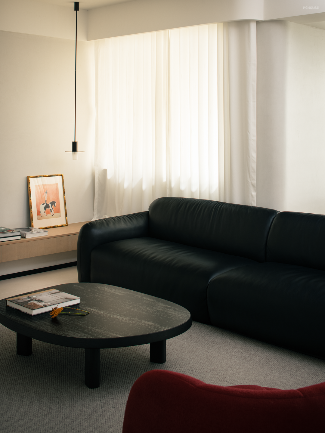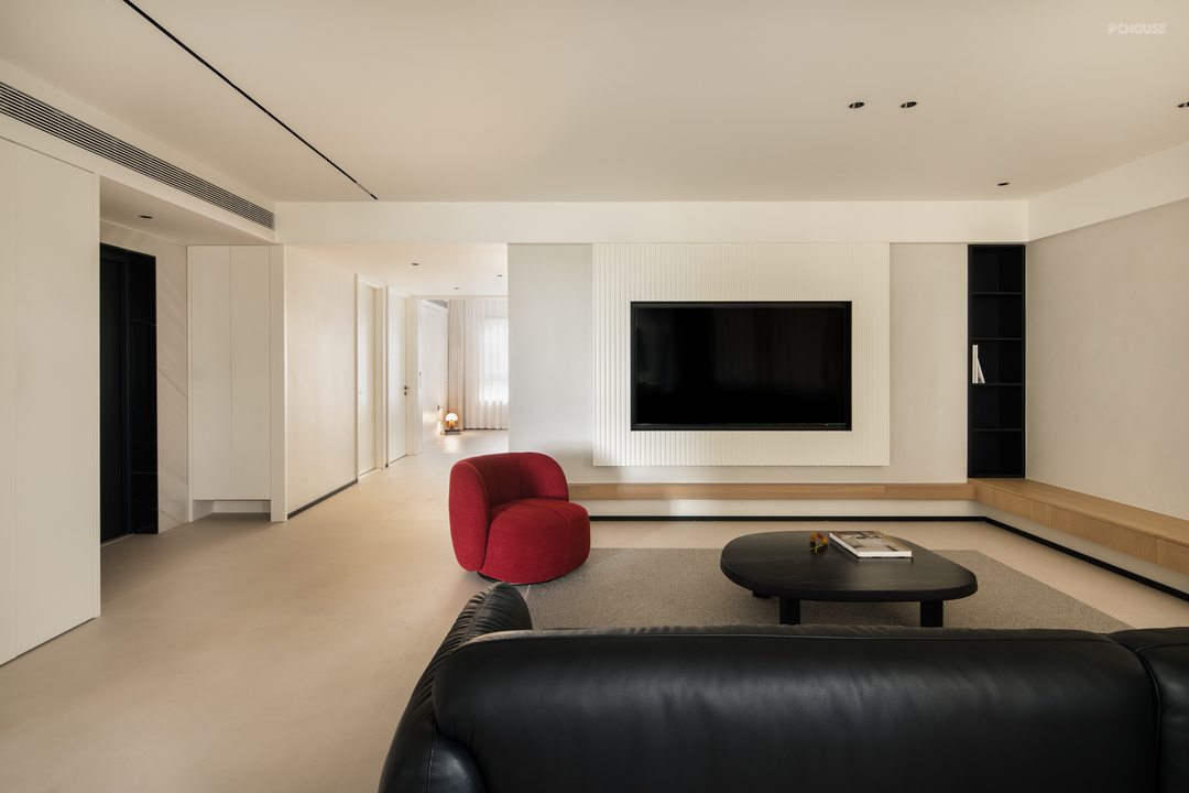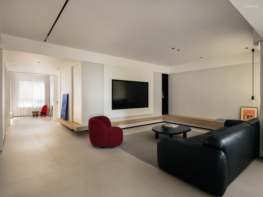 单椅和沙发选用红与黑的经典配色,形成独特的视觉碰撞,打破原本的清冷氛围,为空间注入积极的能量和层次感。