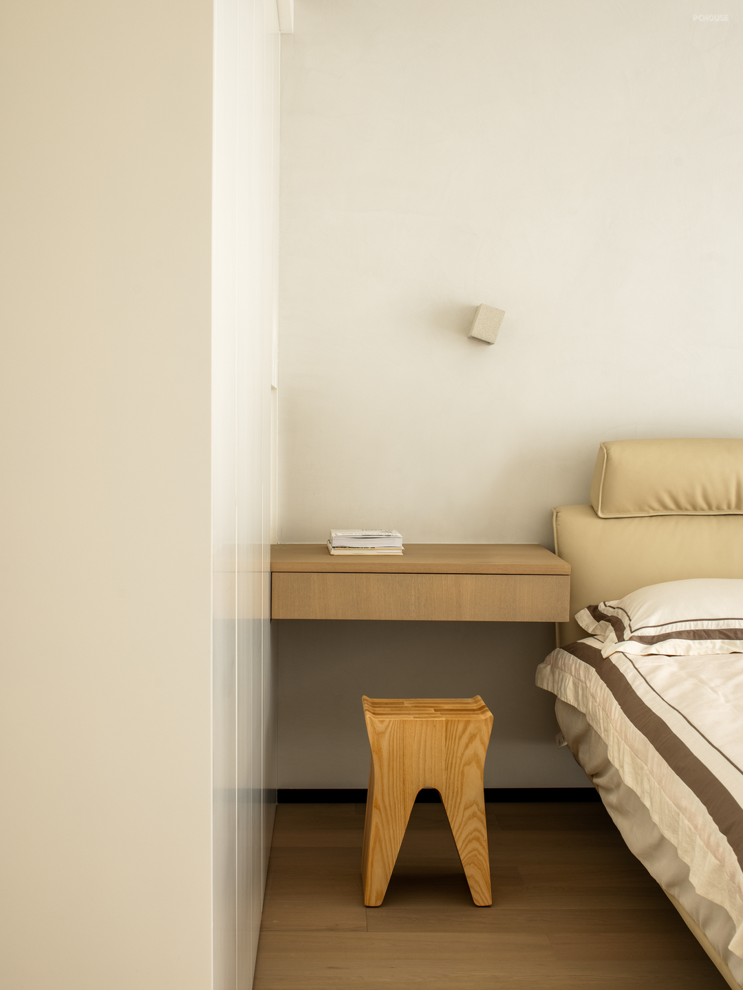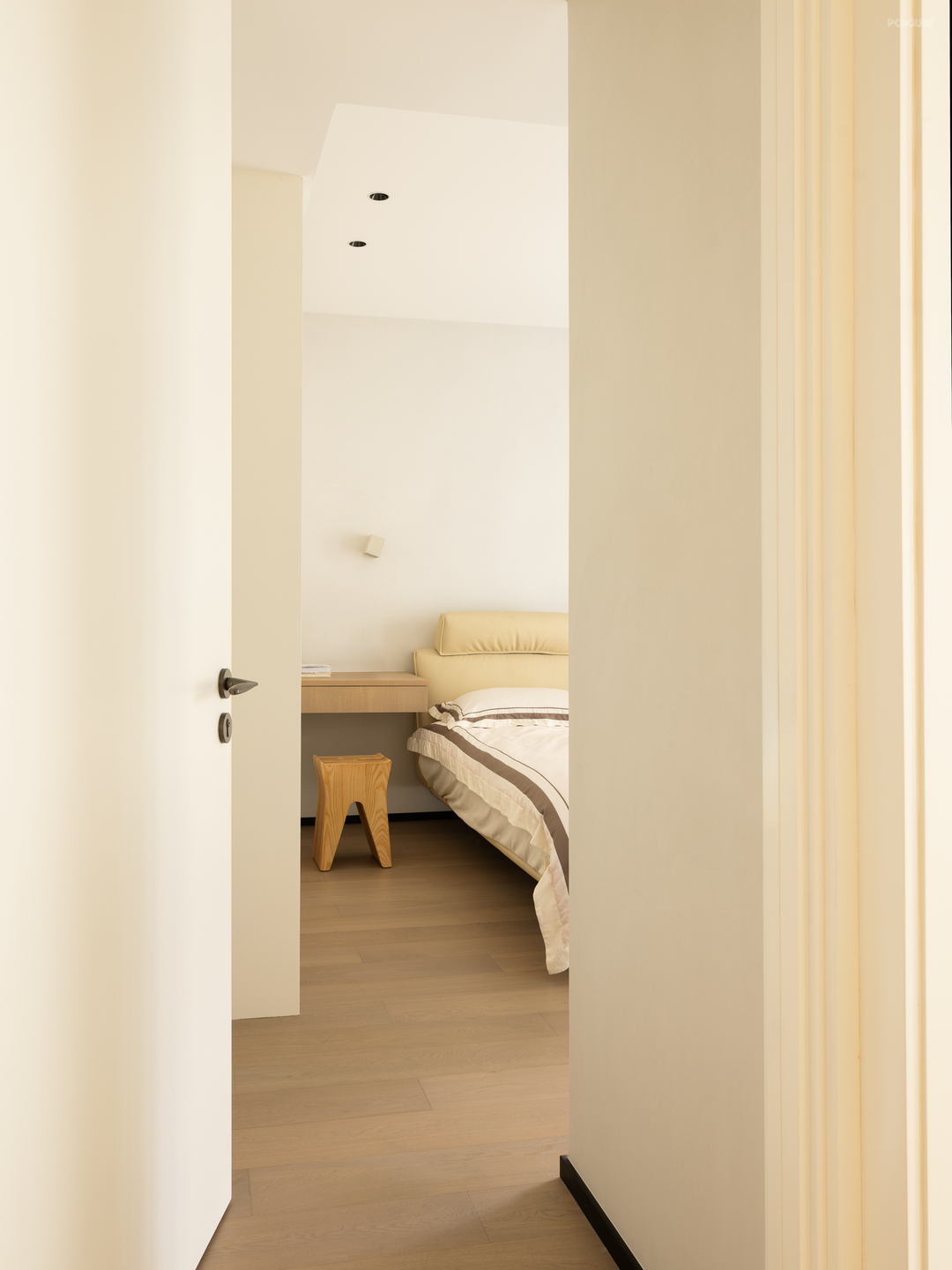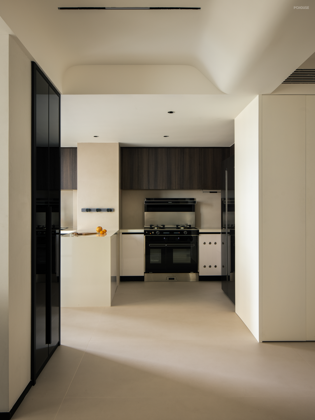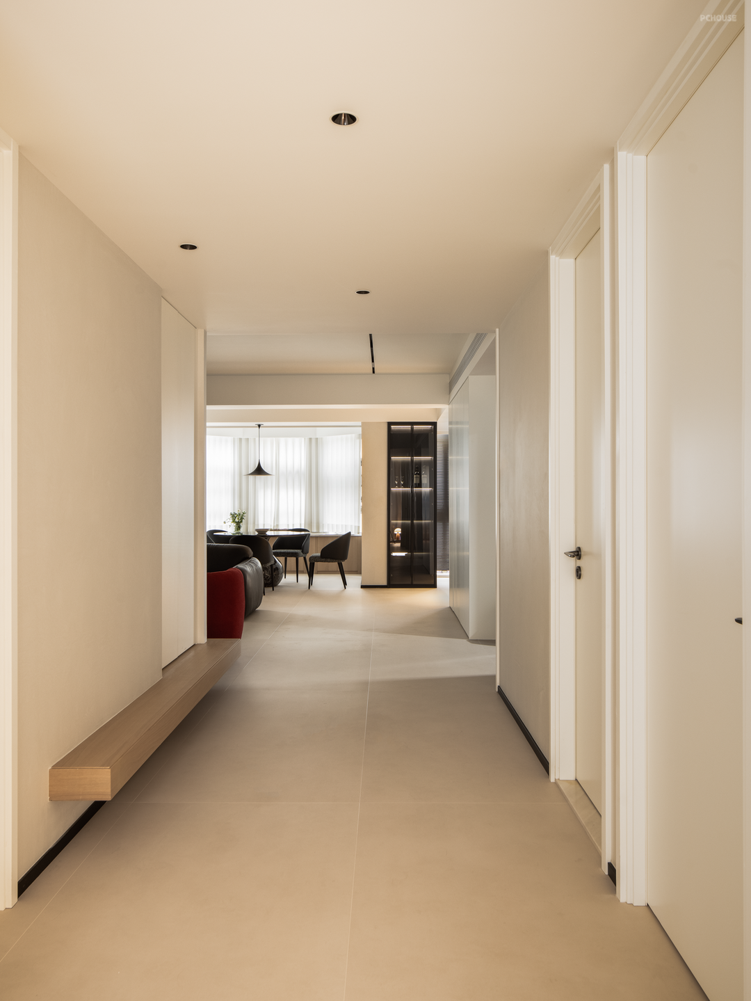 空间是配角,而居者则为主角。走过纯净简约的过道,引导人在归家的那一刻卸下“城市重量”,让心不自觉也变得温柔起来。