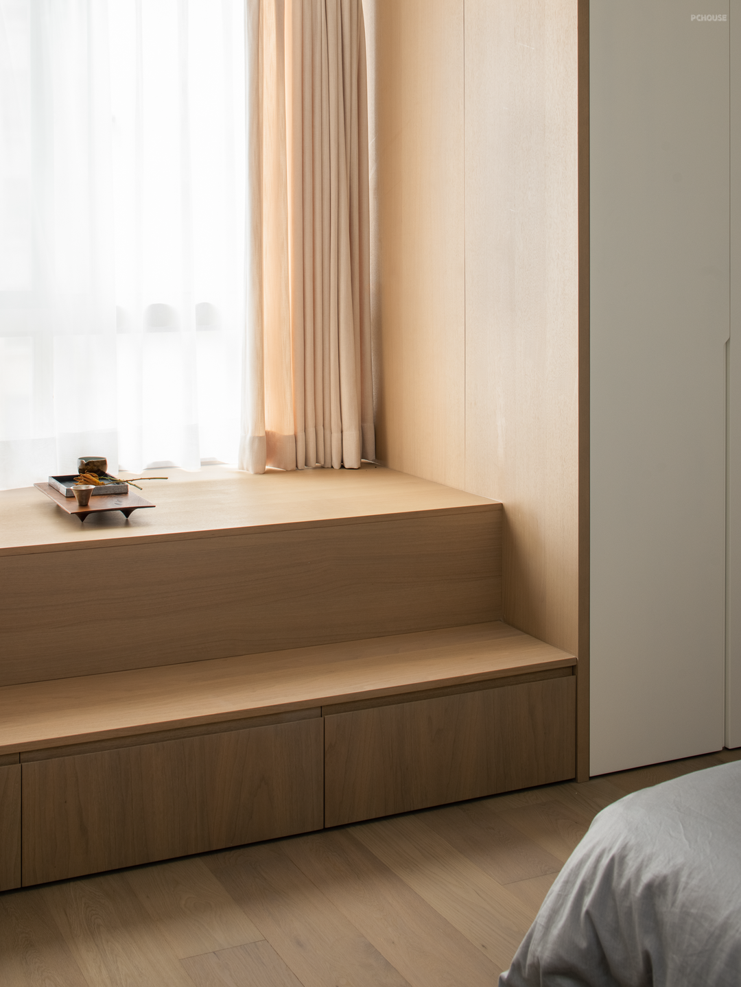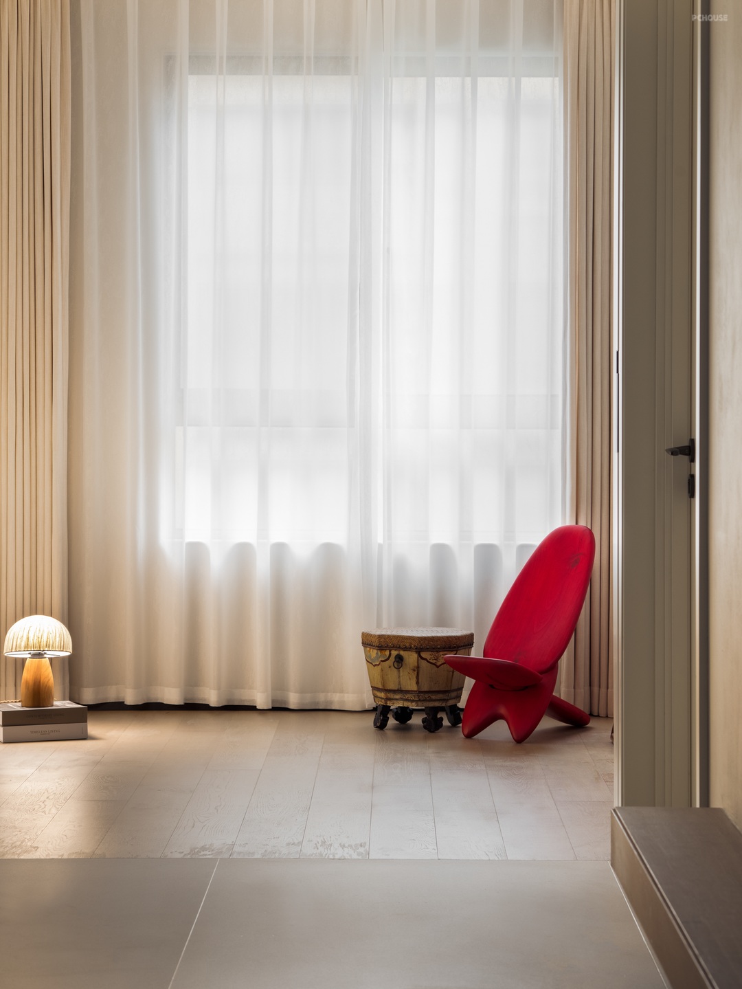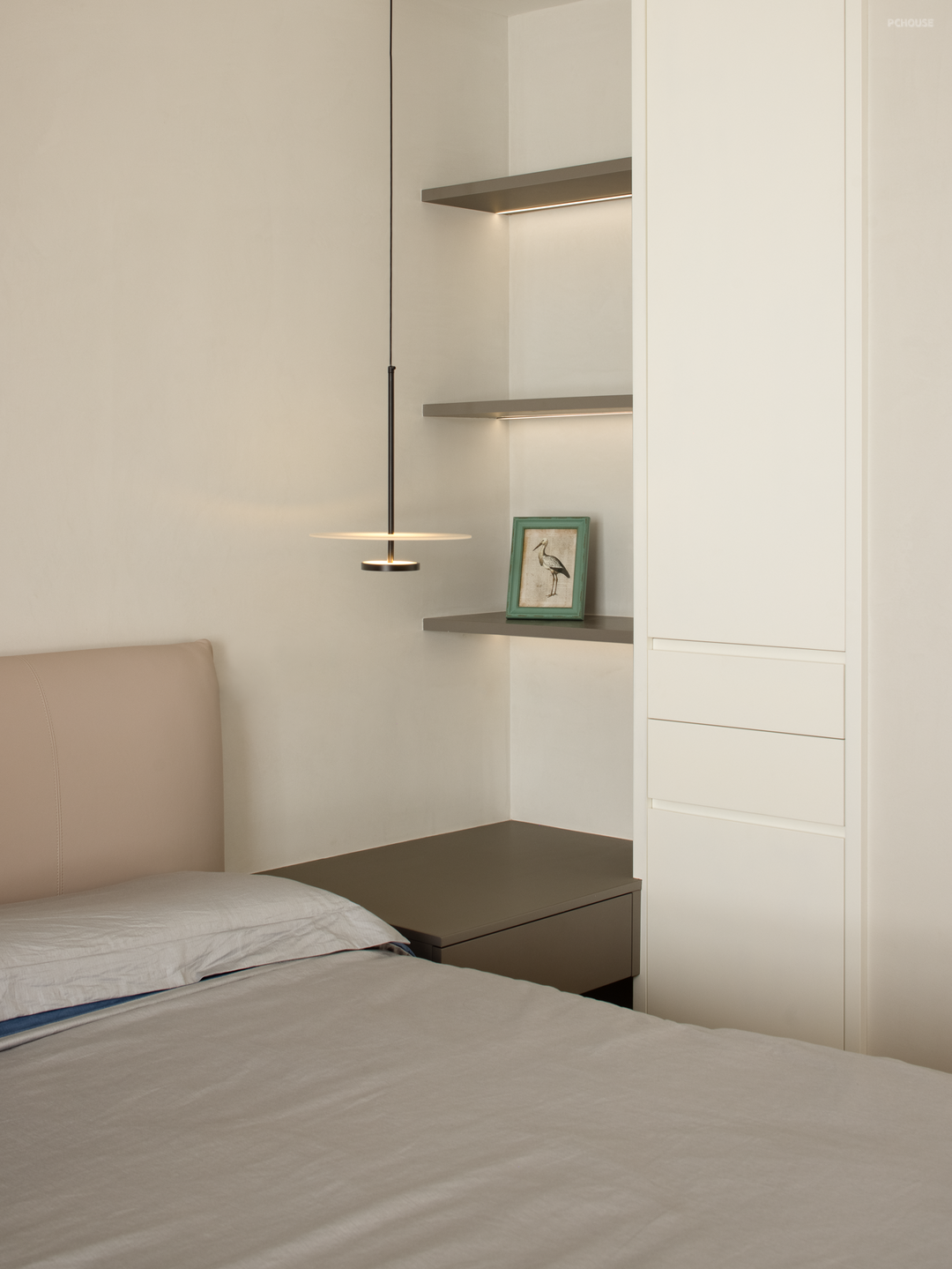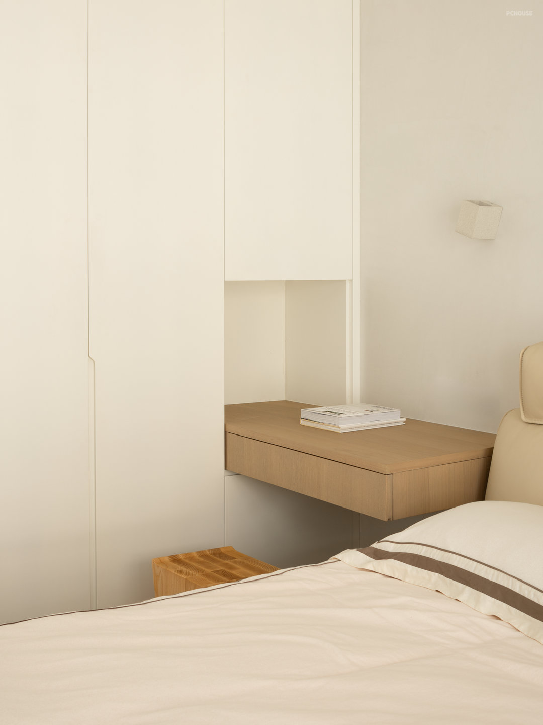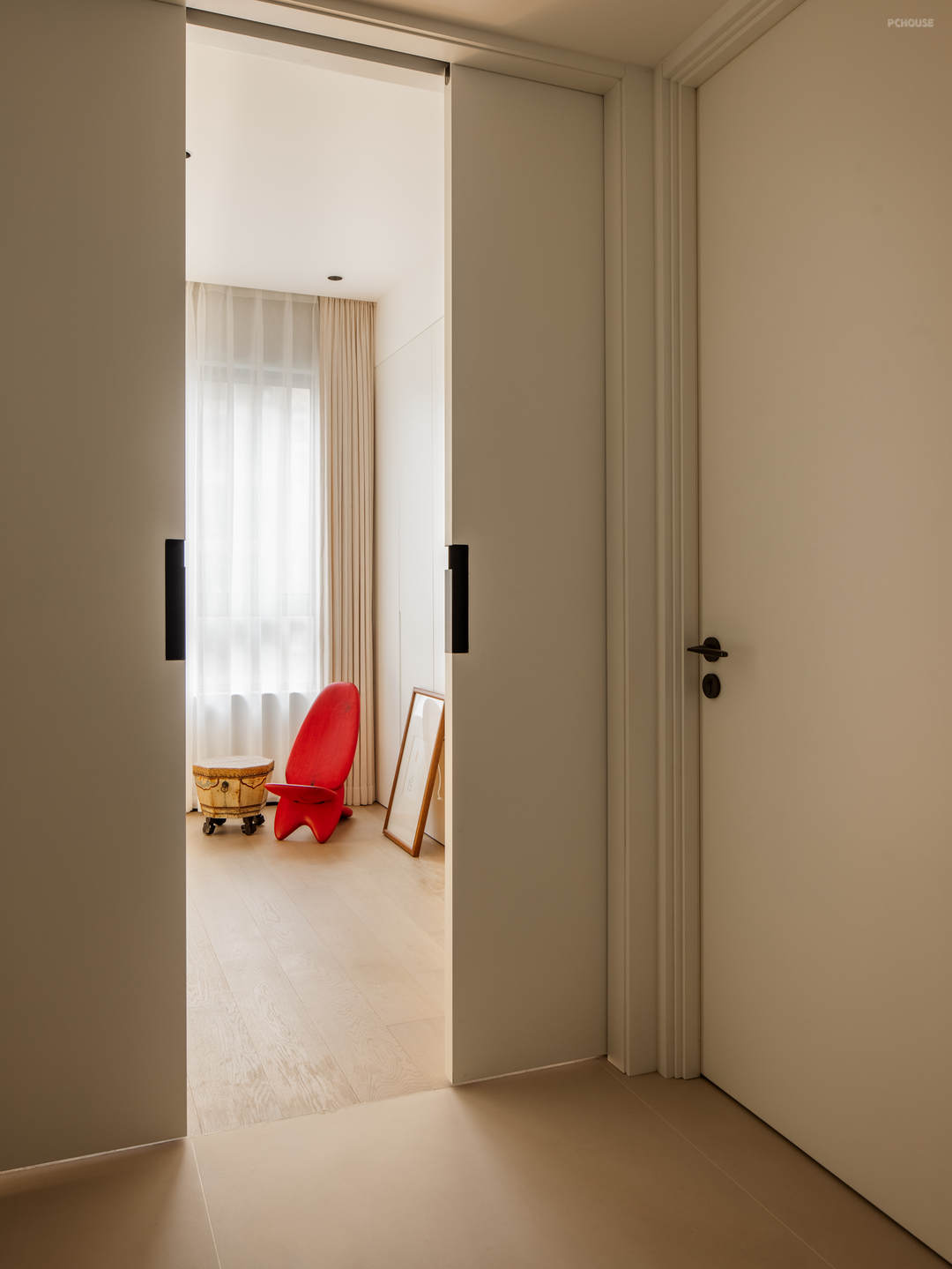 空间是配角,而居者则为主角。走过纯净简约的过道,引导人在归家的那一刻卸下“城市重量”,让心不自觉也变得温柔起来。
