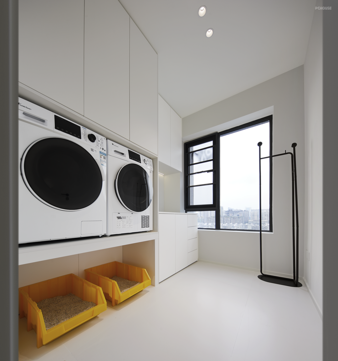将家政间和猫咪房结合在一起,实现一屋两用!家政间的洗衣柜,做了钢结构抬高,更符合人体功能构造,不用弯腰就可以轻松洗衣服~