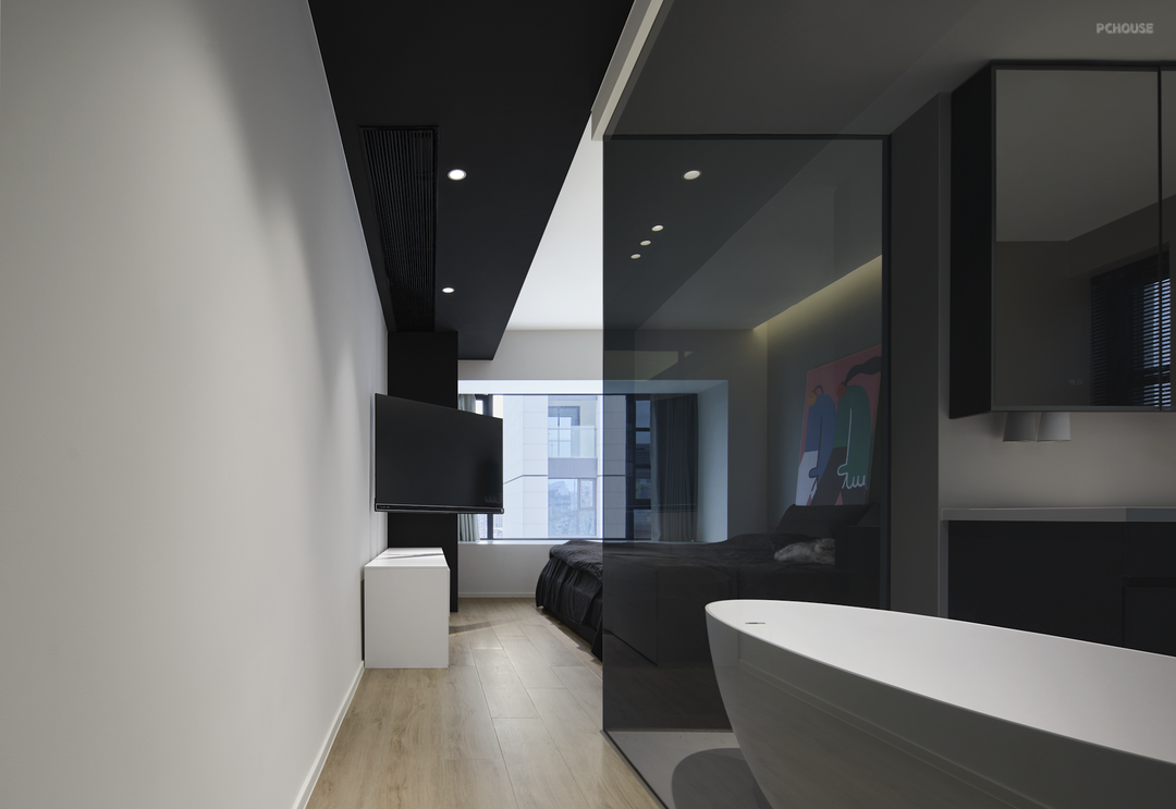 2.打掉卫生间墙体,改成透明玻璃,可以边泡澡边追剧,更能提高沐浴幸福感