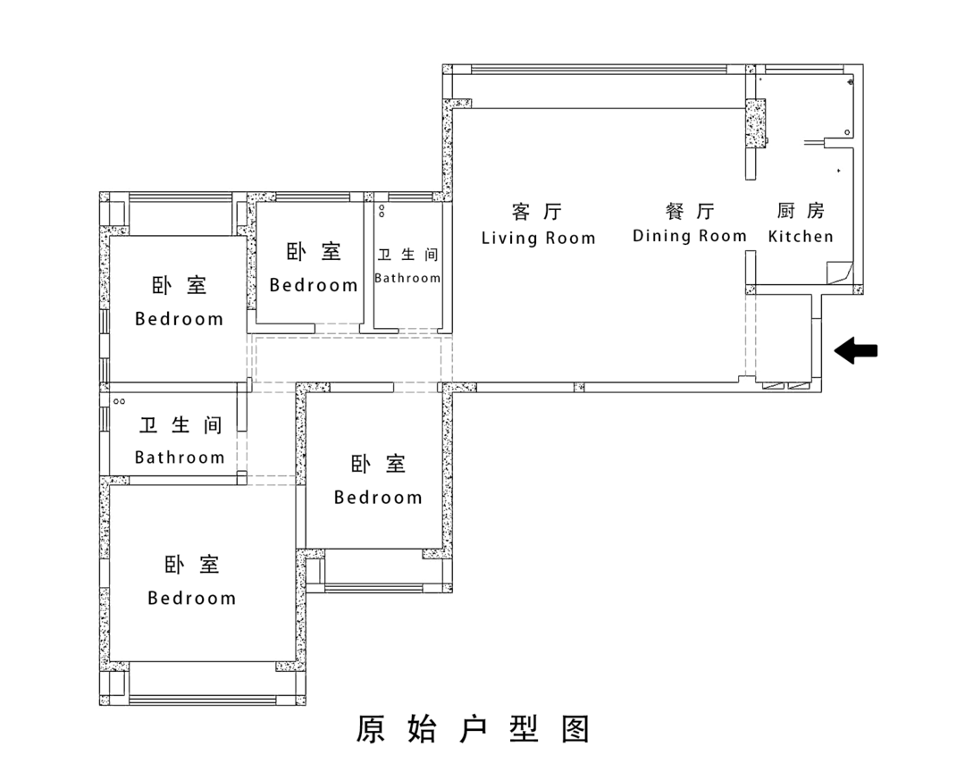 原始户型是四室双卫,房间都比较方正