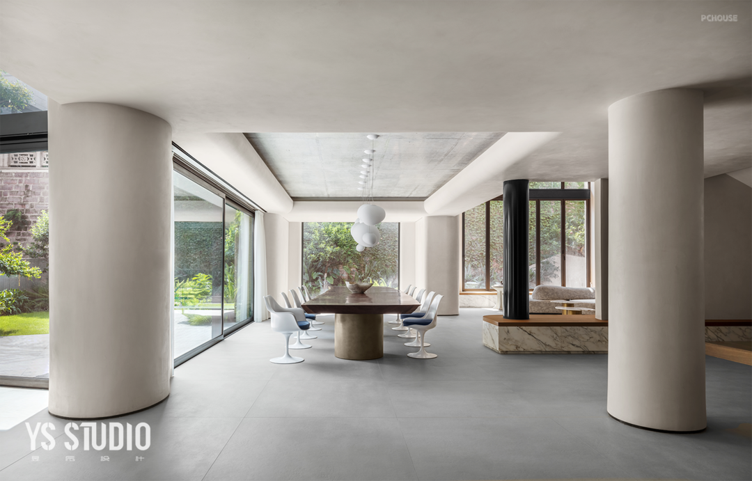 “花园的景观与底层的窗一起设计,让室内的空间变得更加清朗。”