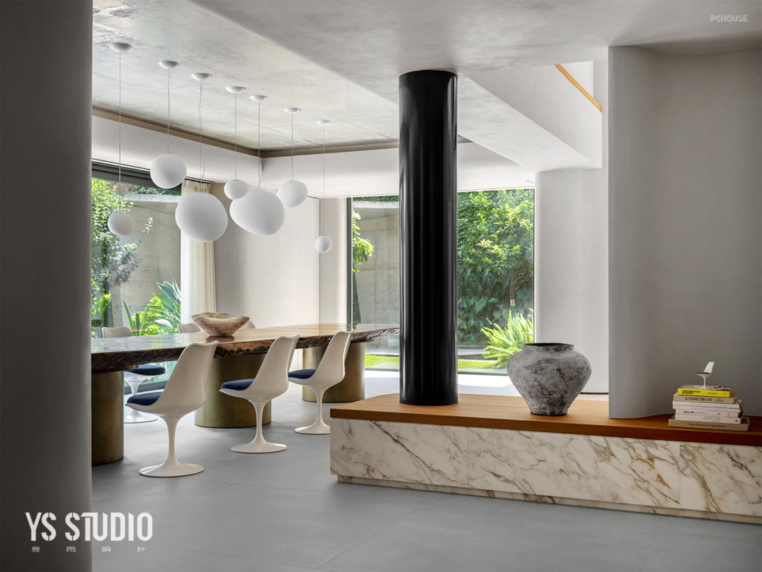这是一套近千平的独栋别墅全案设计项目,共计五层楼,花园、流水环绕。空间的放大,不是平面的简单拼凑。设计需要把控的,大至建筑的规划、小到细枝末节,甚至未来的生活场景的思考。屋主的需求决定了别墅的基本功能,设计师又基于需求,尽可能洞察居住者忽略的日常生活动线,让生活场景还原舒适本源。居住者的日常生活,目之所及的视线,延伸至屋外的自然边界,借助于室外的景观、绿植,重新调整了室内和自然光之间的互补和互动,一切的细节都是设计重点。