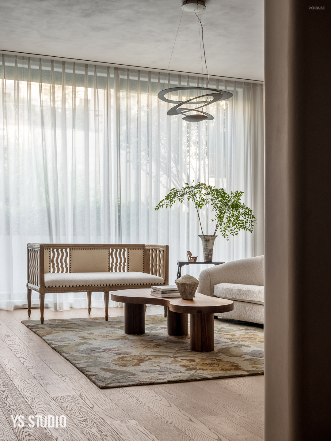 这一处居所,安放了屋主平静的灵魂。除了身体的舒适性,我们希望触及屋主精神的表达。史铁生曾言,生命的意义本不在向外的寻取,而在内向的建立。