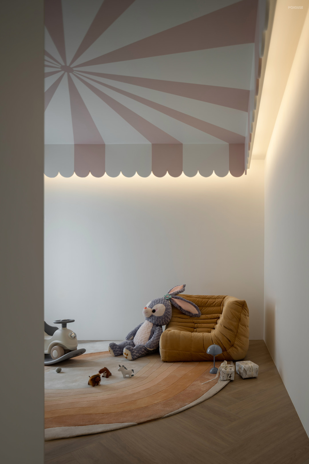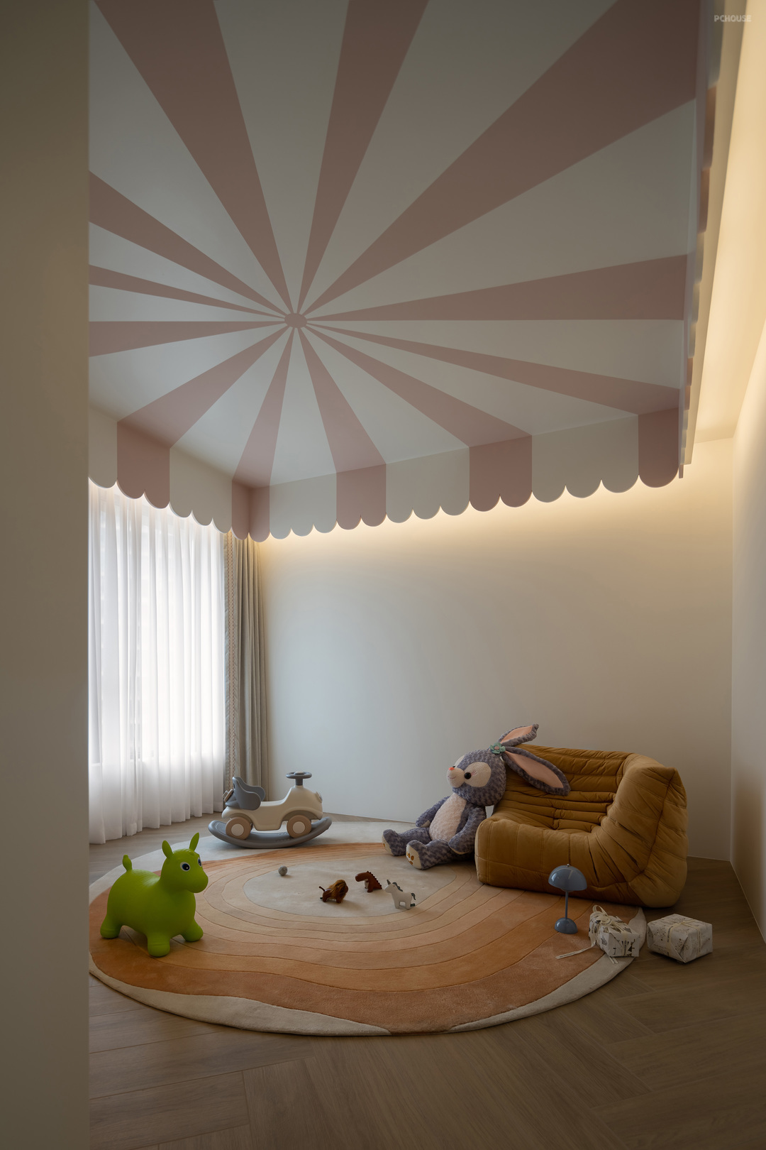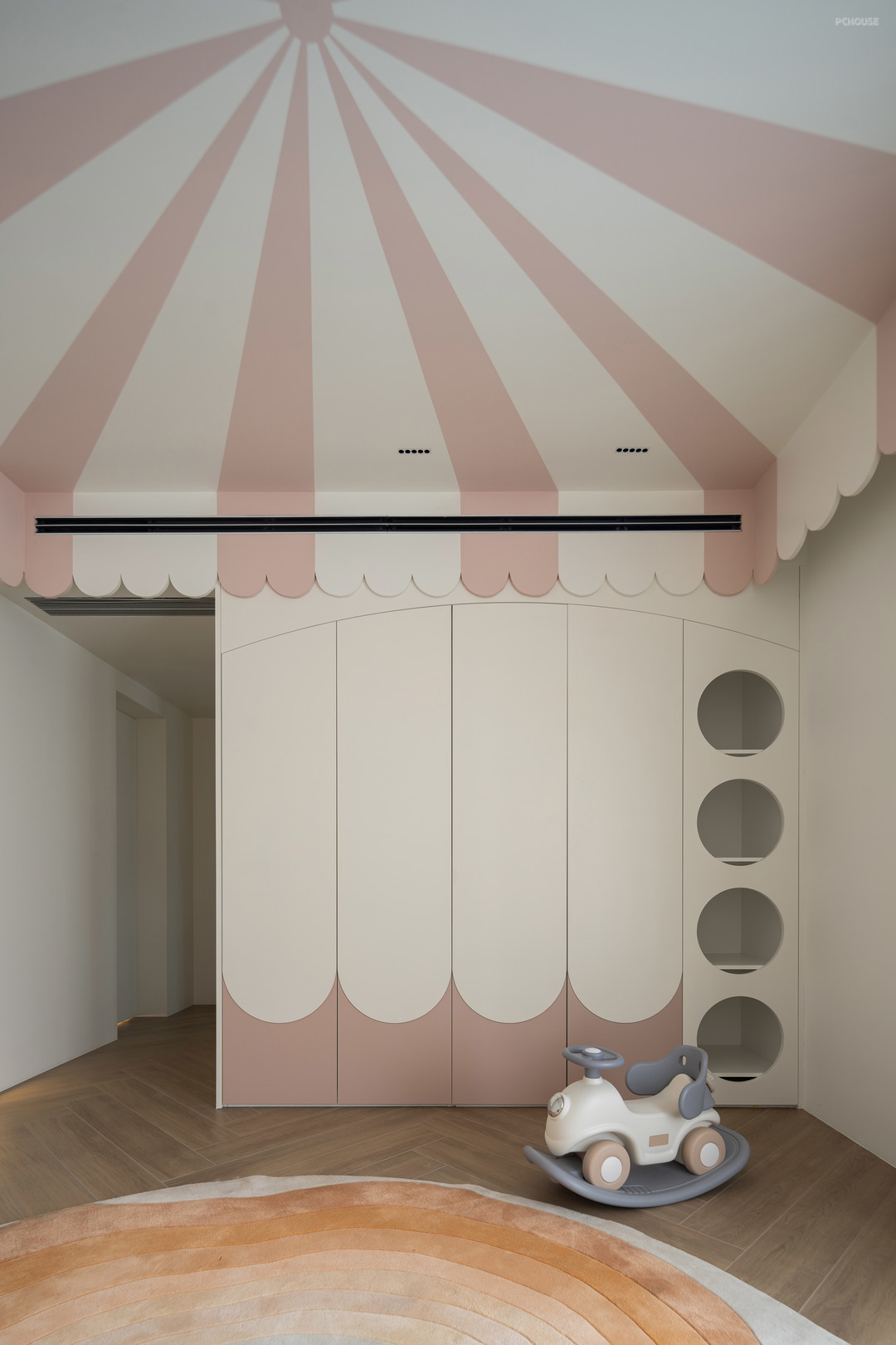 梦幻粉儿童房,是自由与梦想绘成的成长空间。简约舒适的格局下,室内一切陈设从童真出发,将孩子的活波、幻想转化为室内设计的灵感,丰富的童趣装饰,让空间一步步生动起来。