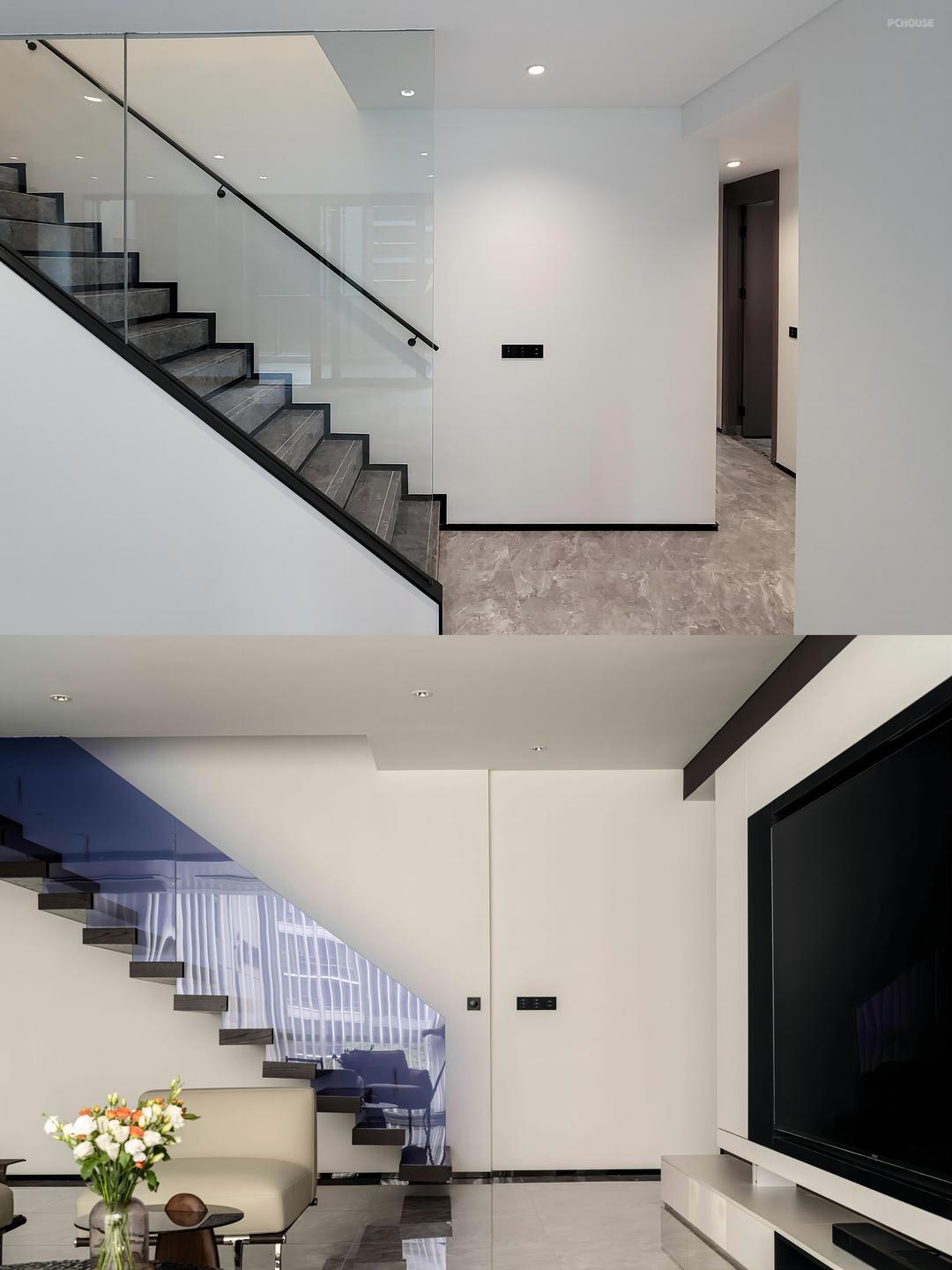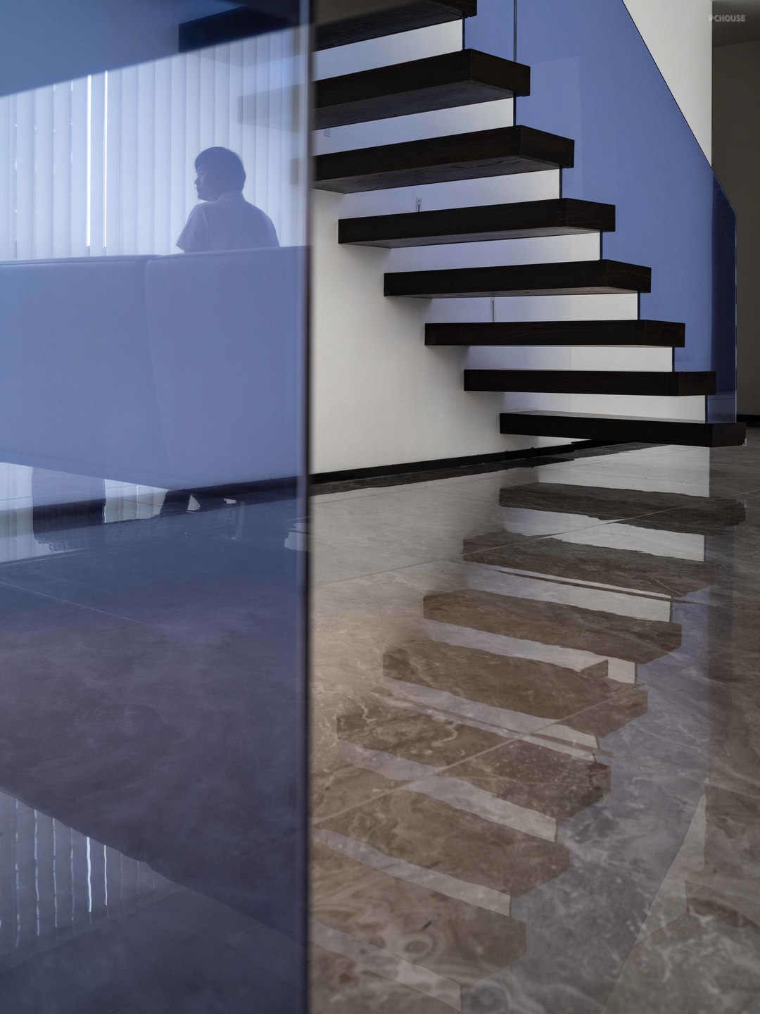 A:最大的施工挑战其实来自楼梯,悬空楼梯的制作工艺需要非常精确,每个尺寸细节都要精准地把控好才能衔接、钢架、五金、玻璃等等不同的材料~