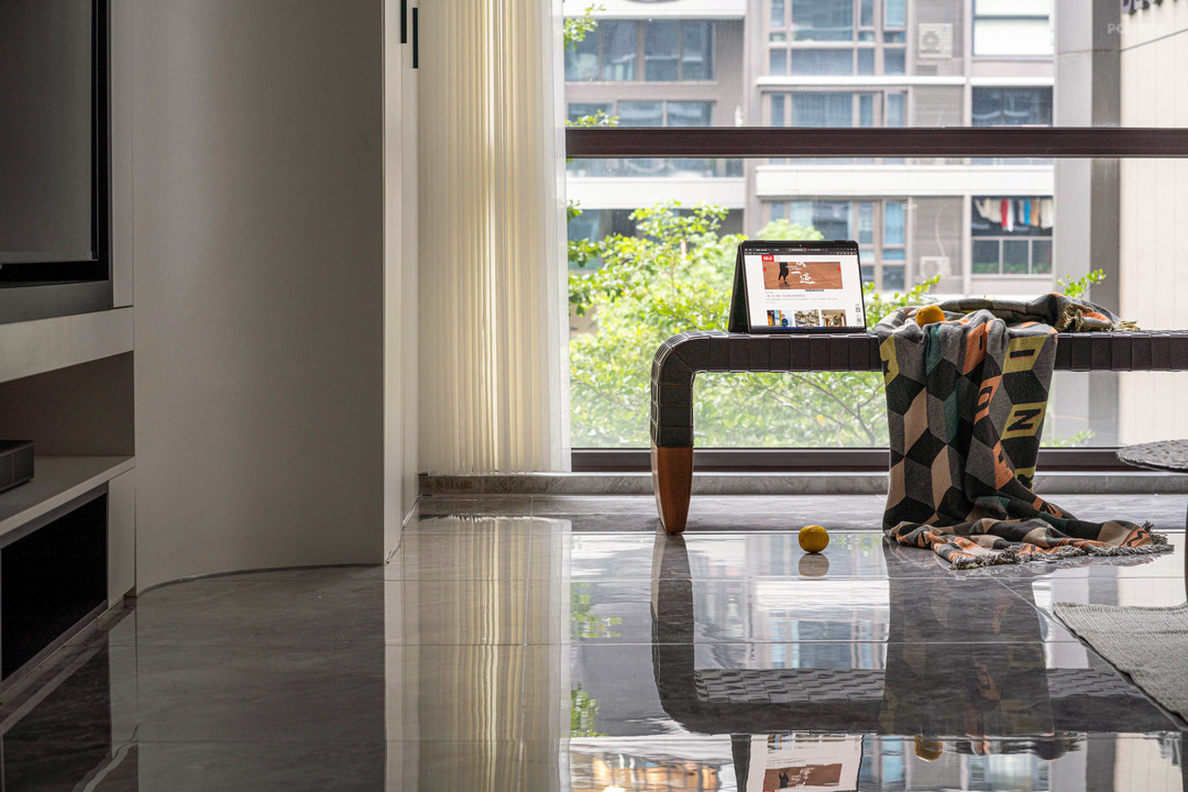 原本精装房的地面就是大家现在看到的这款灰色亮面石纹砖,也是屋主喜欢的颜色材质。