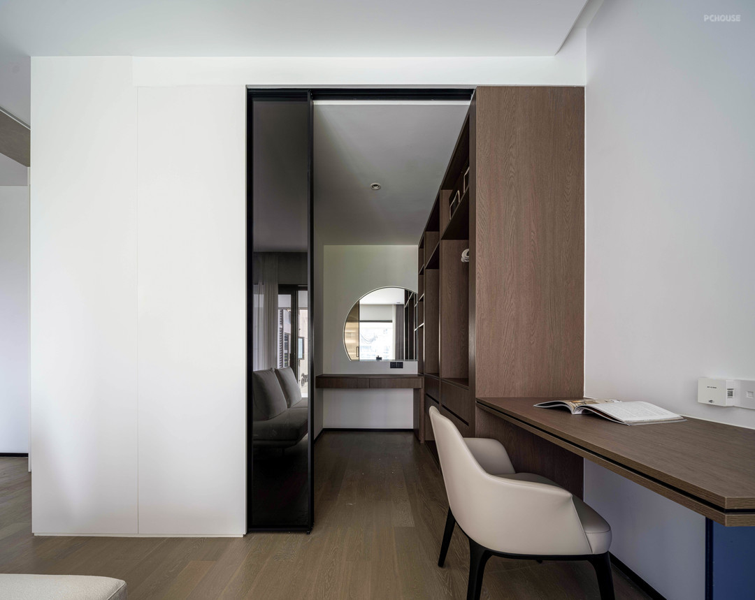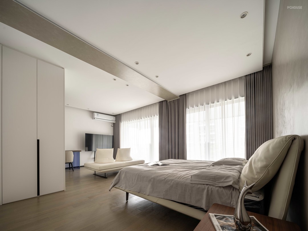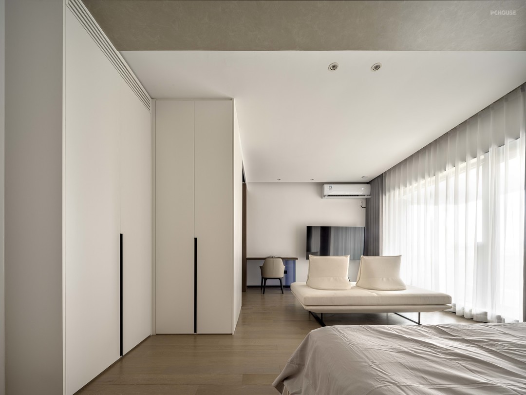 主卧室最大的变化则是拆除原本中间的隔断墙,整体布局活脱脱一个反方向的客厅。