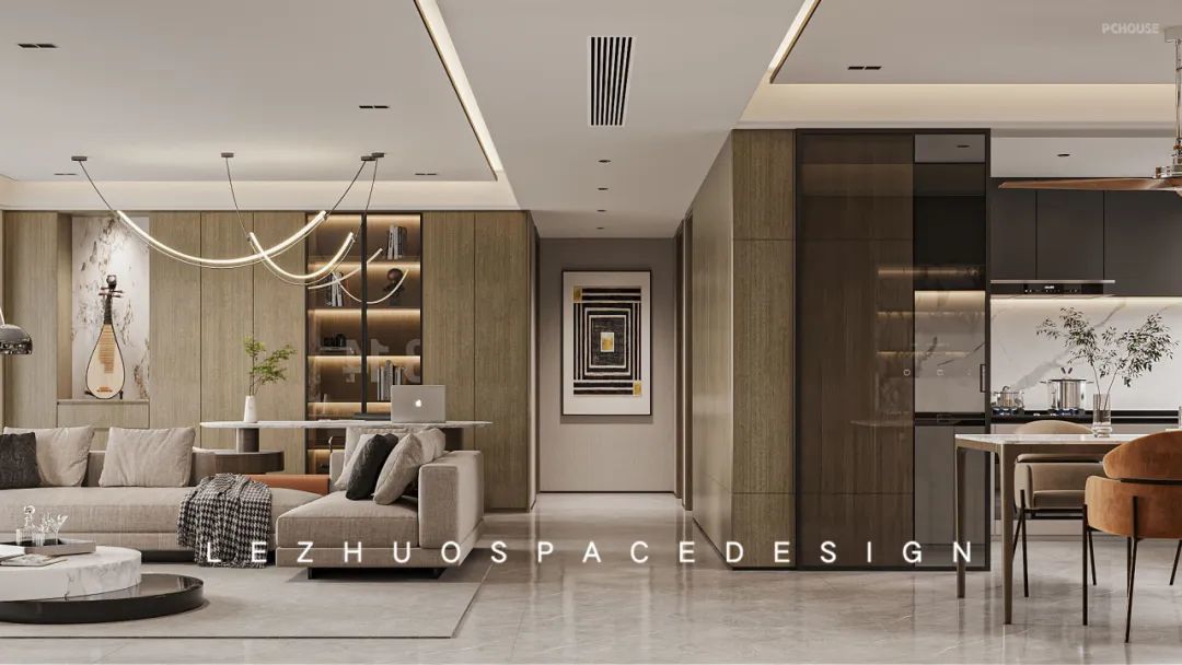 1、以沙发为分界线,划分会客区与办公区,为客厅塑造更多元的生活场景;