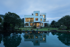 原始建筑带有传统的欧式风格,相对封闭,与周边自然景观的融合度不高。设计师首先对建筑的结构和外立面进行了大刀阔斧地改造,将原有的封闭空间打开,更是满足功能的需求和合理的动线。大面积的极窄窗,将美景及光线引入室内,将室内外的环境融为一体。