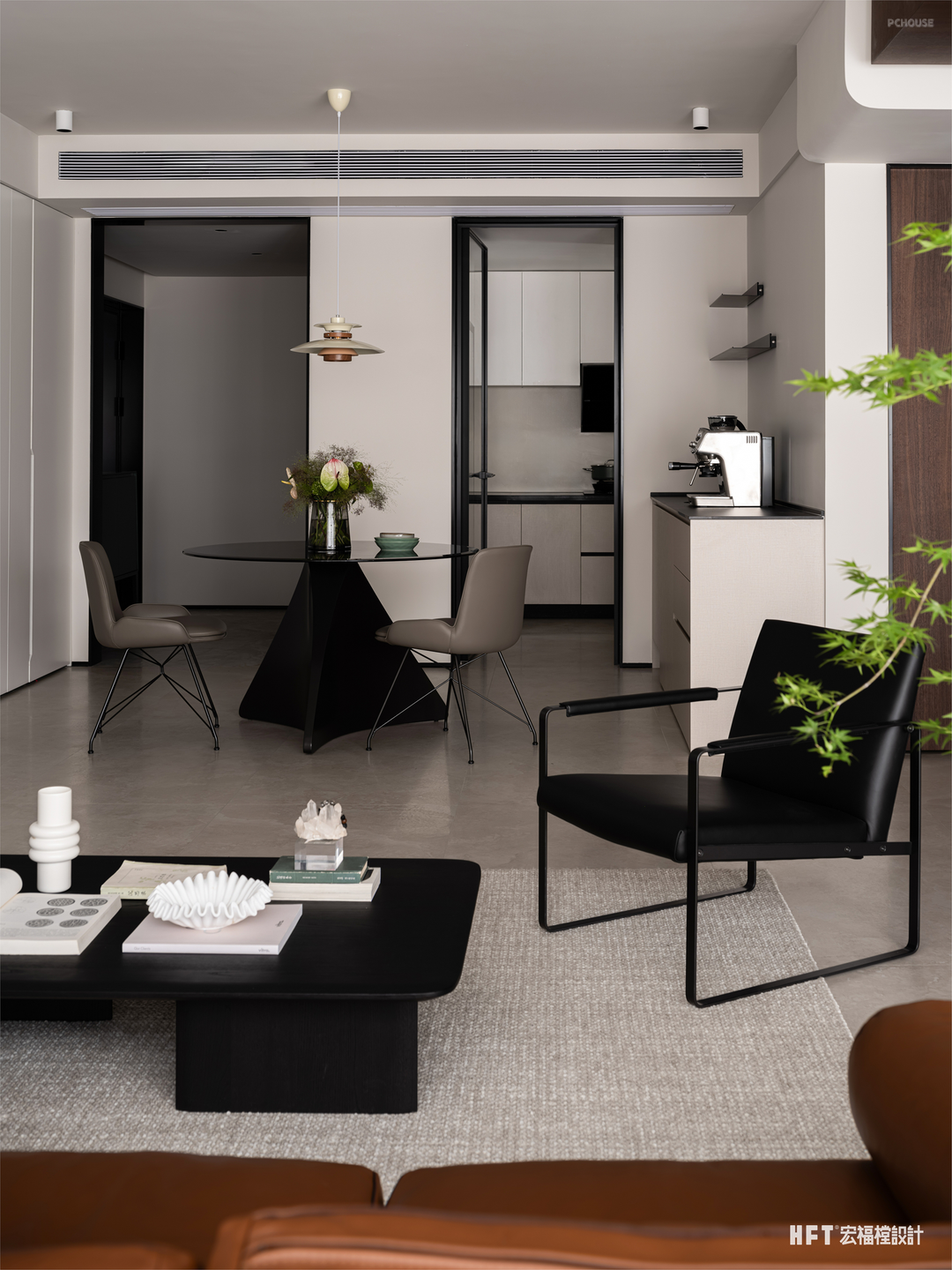 与客厅紧邻卧室拆除,最大化释放空间视觉。