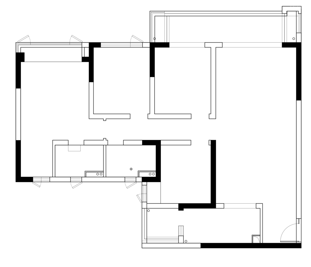2.景观阳台纳入,拆除与客餐厅紧邻两间卧室可动墙体,释放空间,扩大整个公共区域面积