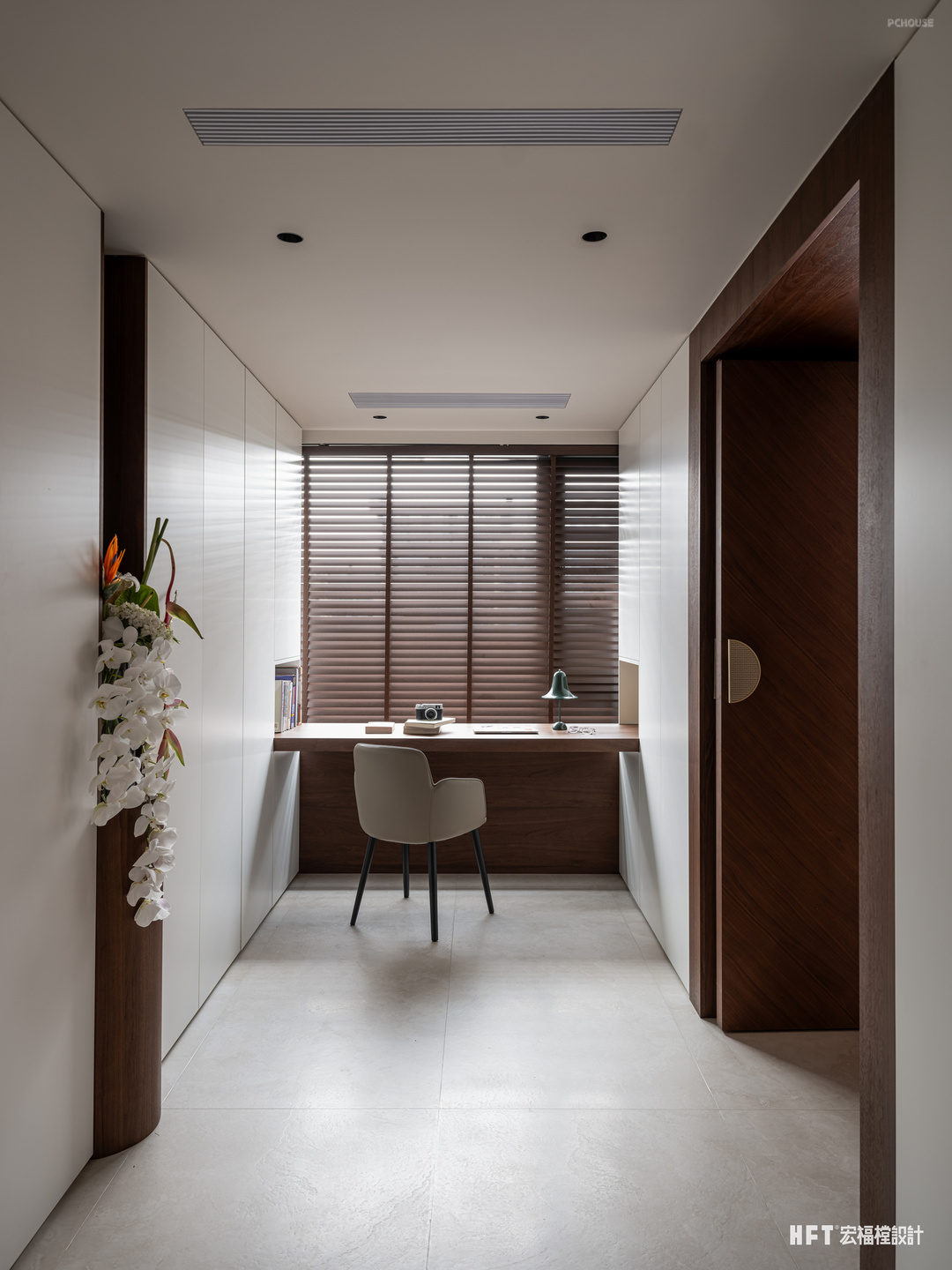 离主卧较近的次卧、次卫一并纳入其内,集合为一间集独立书房、卫生间、衣帽间、入睡区域一体的舒适大套房。
