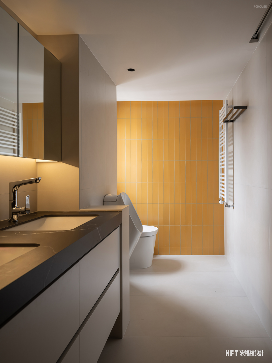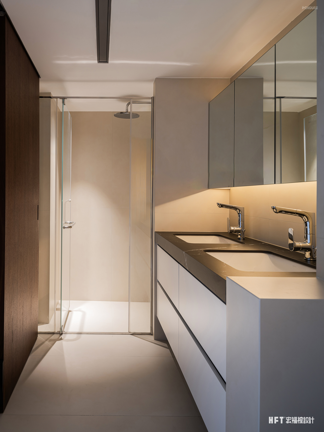 两间卫生间合并后,借部分面积给予衣帽间使用,满足Harry大量的衣帽储物需求。
