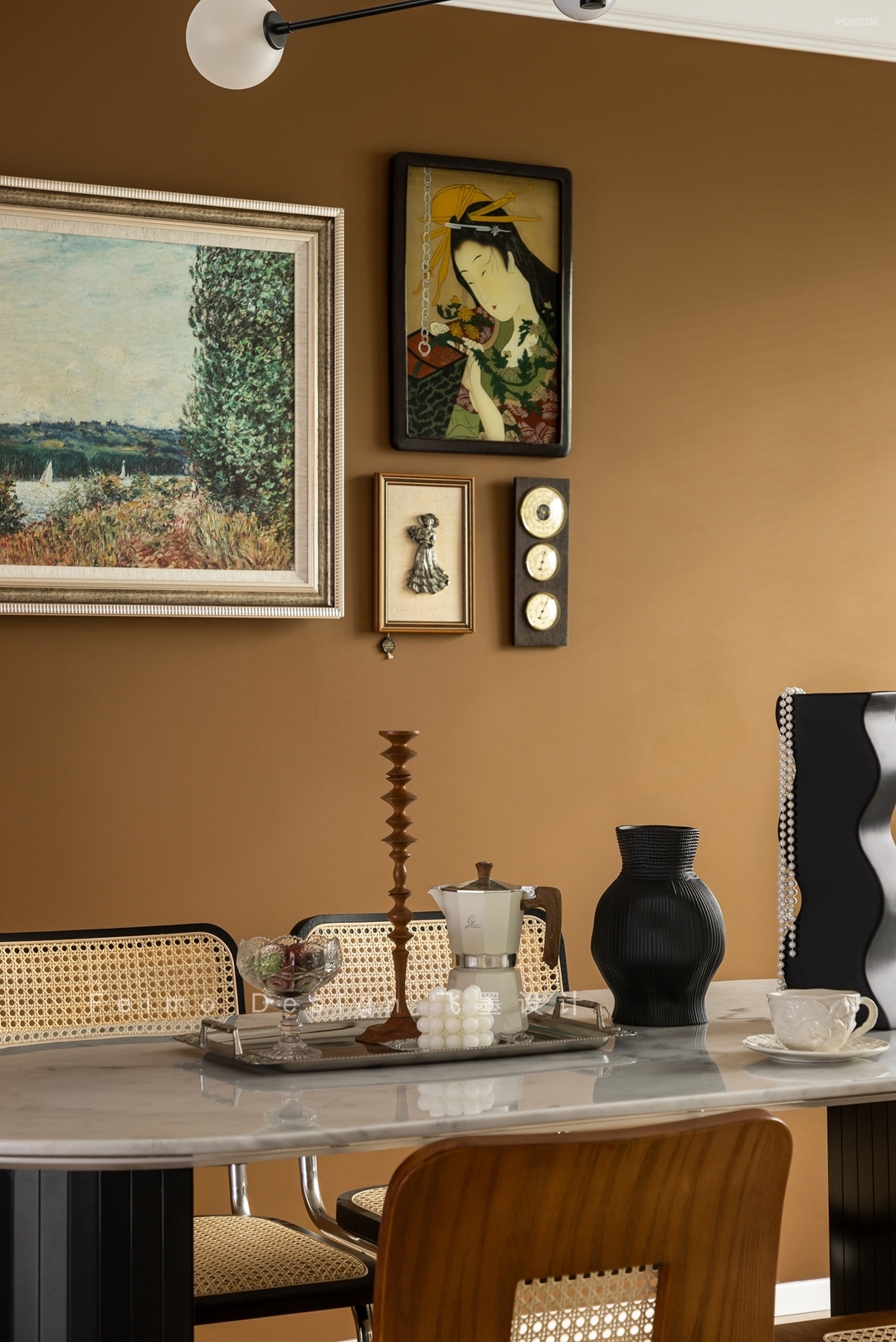 美拉德色系的餐厅,即使在寒冷的冬季也能给人温暖的视觉感受,像是刚烤好的芋头,微微散发热气的栗子香。