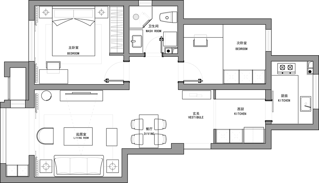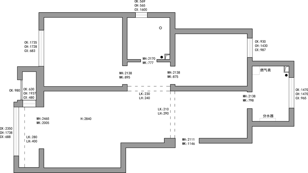 本案痛点:原餐厅过于细长,进门左手边过道浪费面积大。