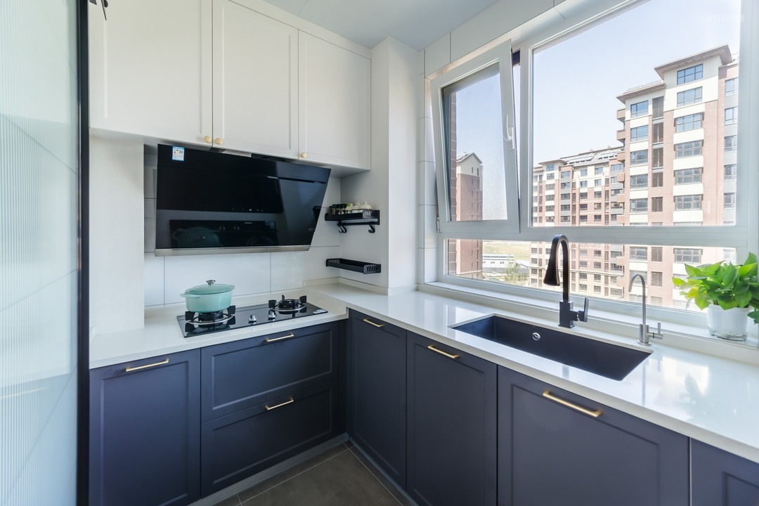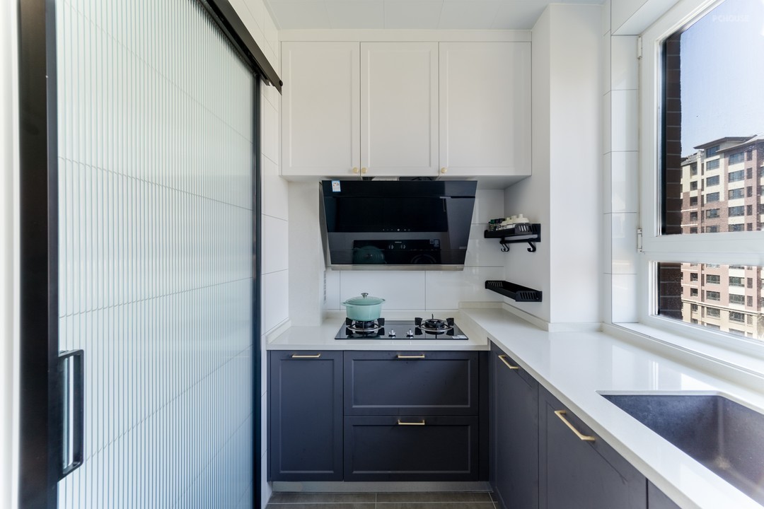 高低台的厨房设计让操作更方便,内嵌洗菜盆更易清理卫生