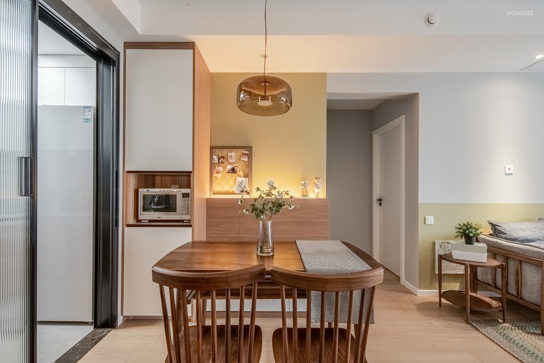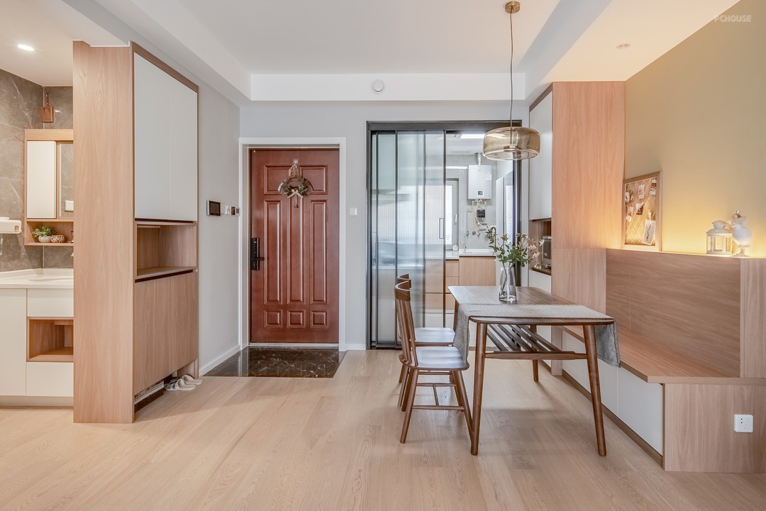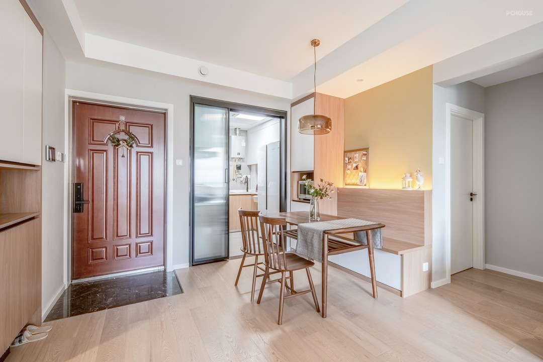本案痛点:没有入户鞋柜,餐厅及厨房较小,收纳空间少。