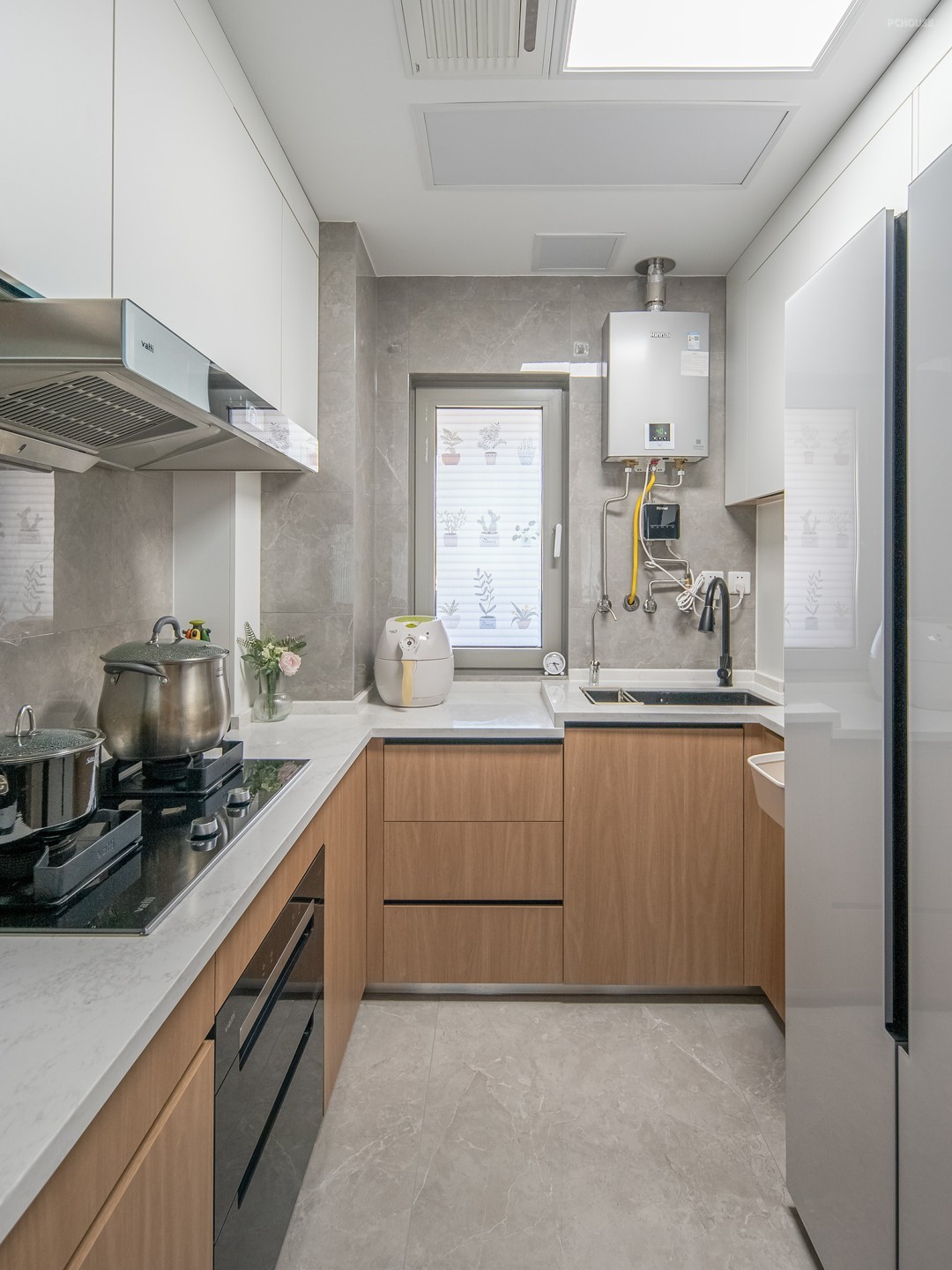 前言: 业主找到我们是源于一个同小区同户型的另外一个业主,本来业主觉得房子小,丢失了装修设计的兴趣,有一次去我们装完的同户型参观,一眼就相中了,觉得装修设计后房子看起很好啊,也不显小,于是直接通过我们的业主找到我们,第一次见面沟通很顺利,直接交钱下定。因为装过同户型比较有经验,又结合业主的具体需求,然后就有了下面这套暖暖的日韩风设计。业主是一家4口,朝鲜人,两个儿子,一个高中,一个初中,但女主人是个特别有气质的人生活很细腻,一点也看不出是有这么大儿子的妈妈。所以这个109的小3室,房间也被分配的刚刚好。主人住主卧,大儿子住次卧,小儿子住小卧。我一直觉得对于一个只有一个卫生间的房子,干湿分离显的非常重要,既能满足2个人的同时使用卫生间还不互相影响。细节处我们通过墙排马桶解决卫生清理问题,通过4层壁龛处理解决卫生间收纳问题,通过洗手盆抽拉龙头处理解决家里男人们早起洗头问题,入户通过石材的下沉处理解决入户灰尘问题等等。