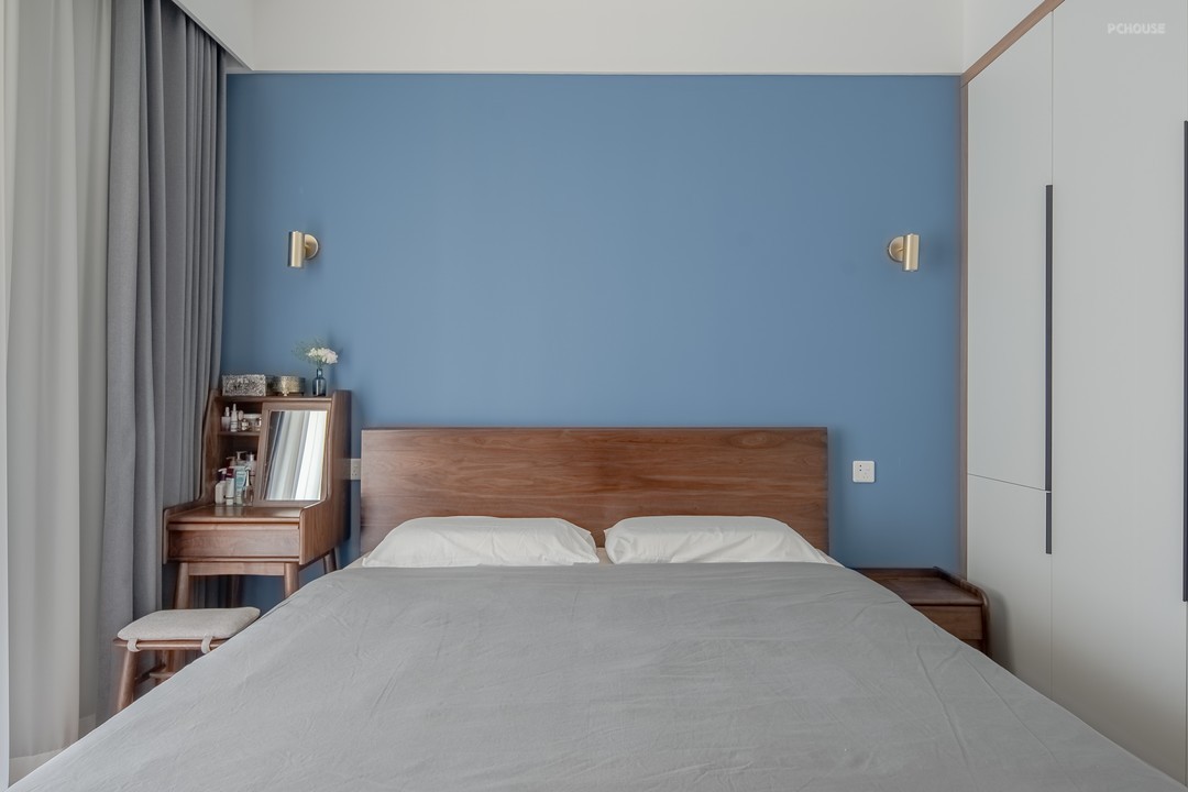 小巧的梳妆台适合空间不大的卧室,胡桃木的家具在浅色硬装的搭配下更显质感。