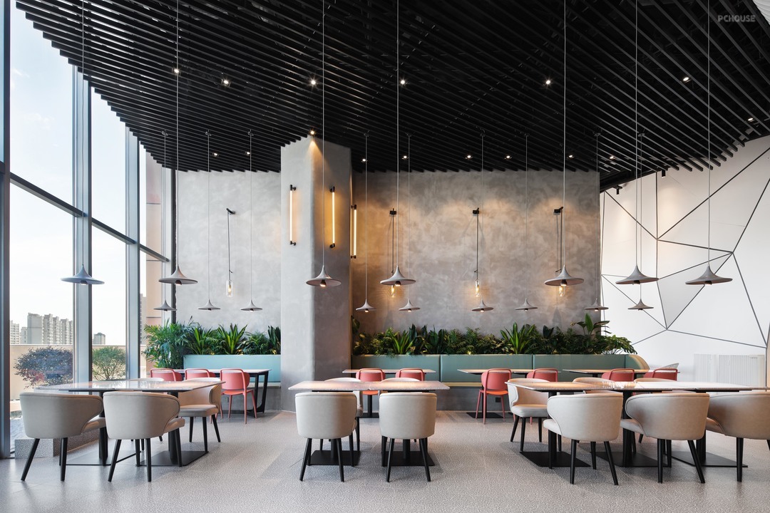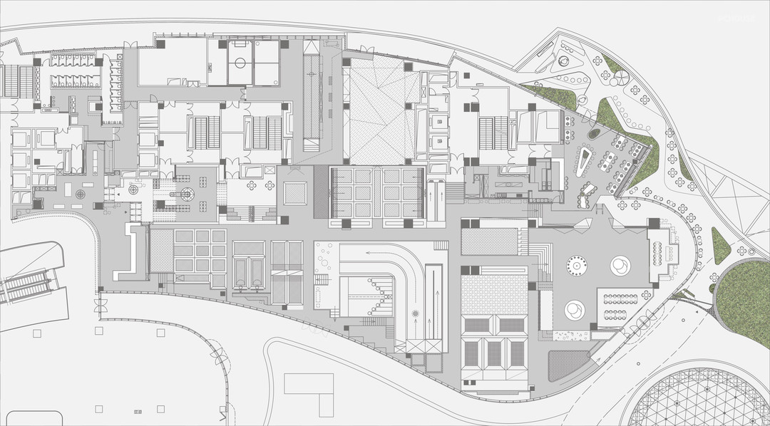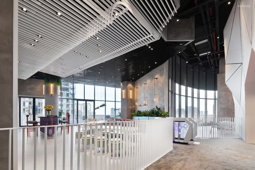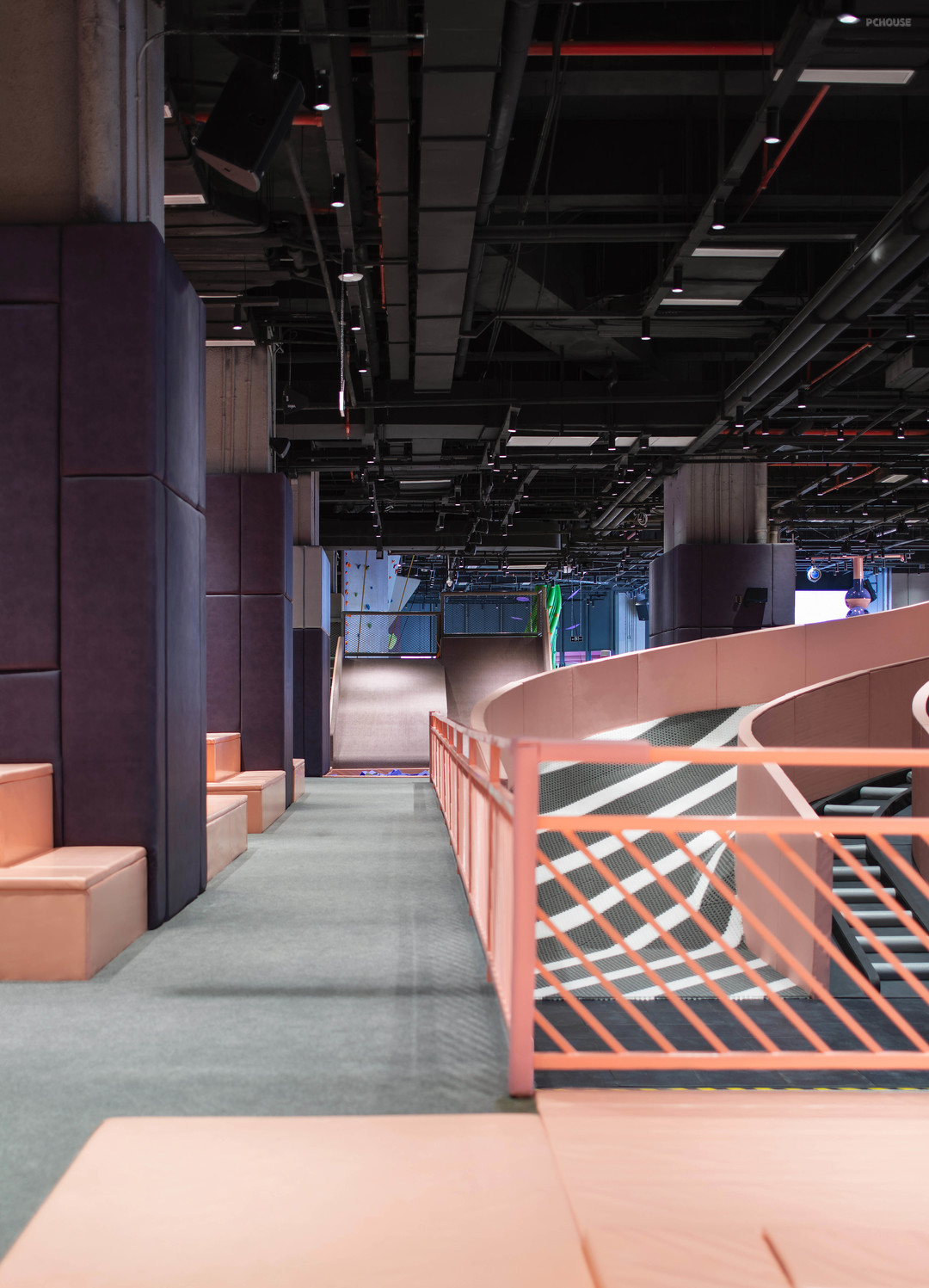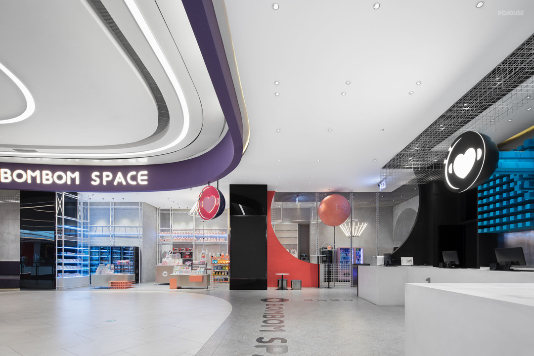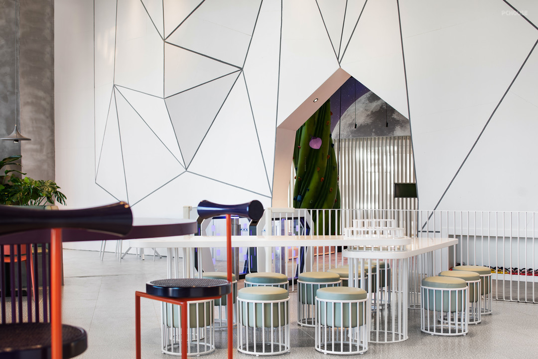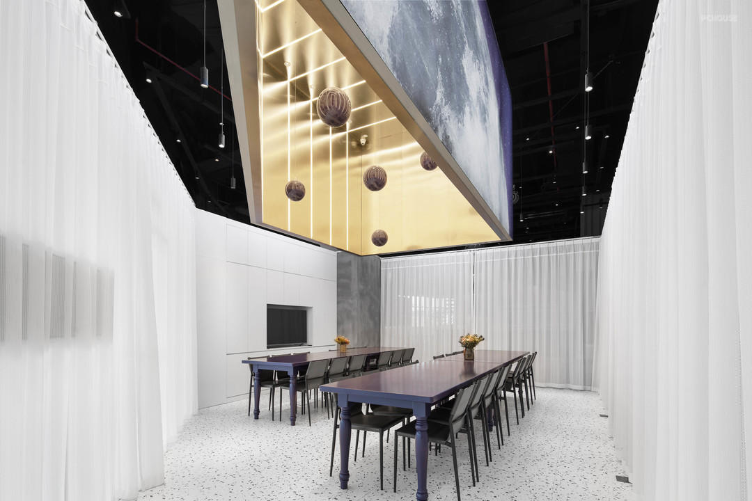 设计师把整个空间看作是宏大的原始宇宙,而要建造的猩球将诞生在这个片宇宙之中。设计师打破原有曲线分布手法,引入空间解析的概念,以锯齿折线的形式在弧形空间里做空间划分。以她的天为天,以她的地为地,以她的骨为骨,来进行猩球的建设和再造。