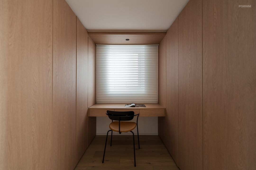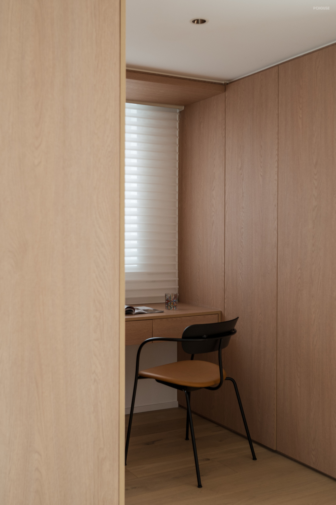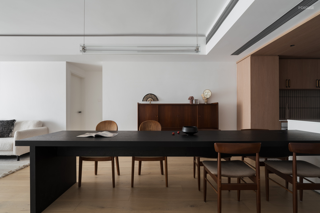 超长吧台的组合搭配,带点中古感的同时,又不会显得过于老气,延续了整体轻复古的感觉,也能满足现代生活节奏下的使用习惯。面对品茶、读书、办公、聚餐等需求,也能从容应对。