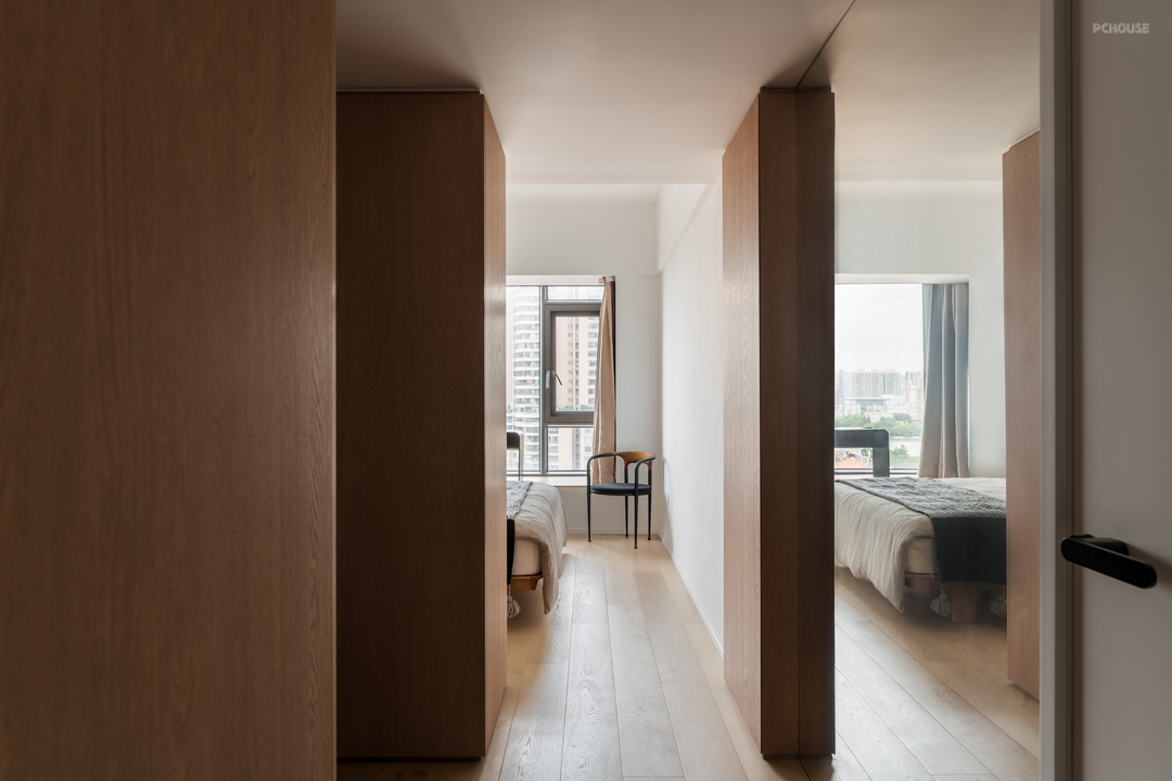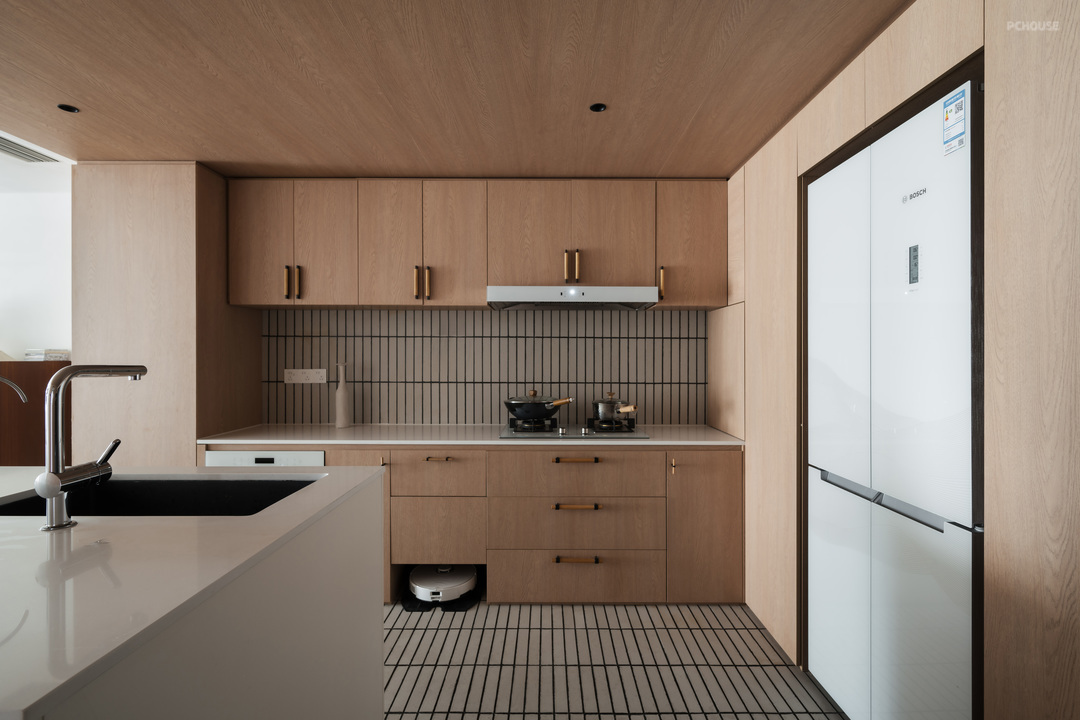 前言: 本项目位于广州市越秀区。业主两人都是90后海归工装设计师,希望改造的房子能够延续留学时光那份独有的美好。整体改造采用手工砖来呈现房子的岁月感。木饰面和木地板的大面积使用,让人在进入房子的瞬间仿佛置身于自然的环境,能够感受到自然带来的舒适和松弛。客餐厅通过调整布局并运用设计技巧,空间显得更大更有气质。超长的吧台设计,可以集品茶、读书、工作、听音乐、聚餐于一体。能够满足屋主的社交和办公需求,充分享受大长桌带来的便利性与满足感。木材类软装家居的选取,让整体空间更协调。所追求的复古感并不在于复古材料的本身,而是承载的回忆和情感,赋予房子特殊的意义和珍贵。