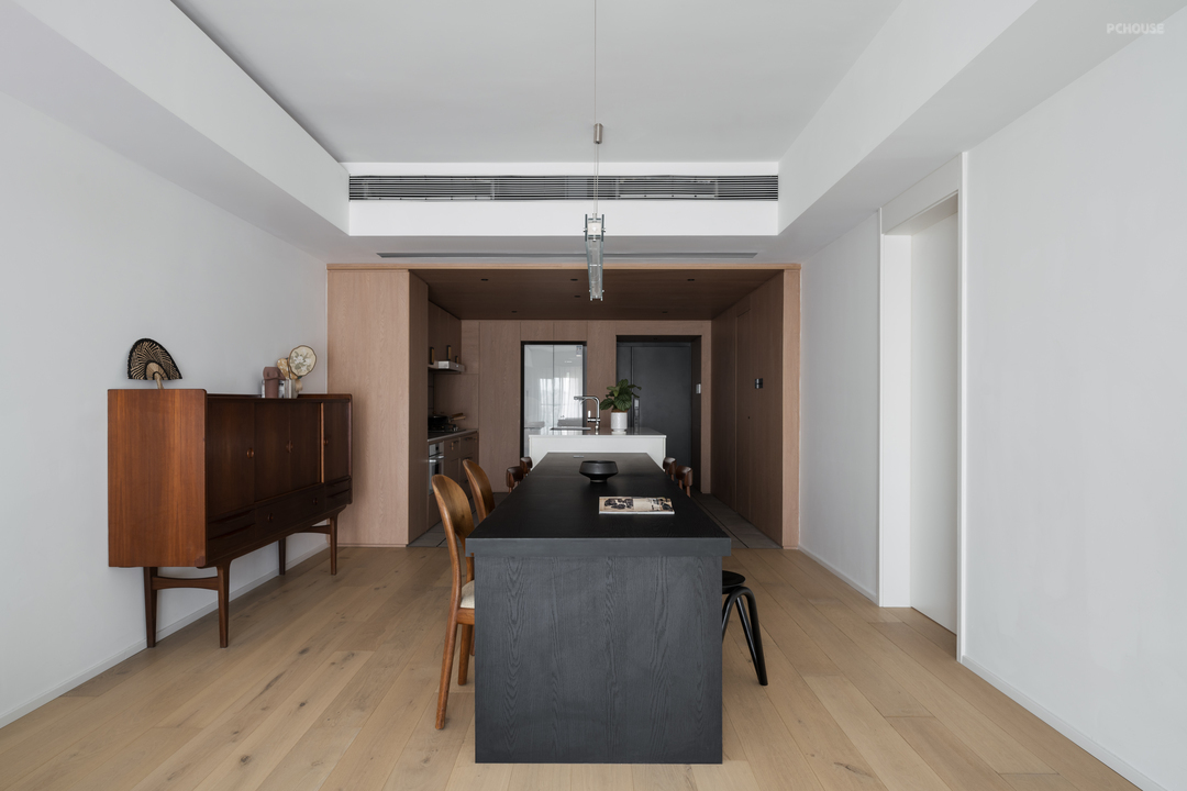 3.超长吧台承载了办公、学习、用餐等需求,更符合屋主当下生活习惯。