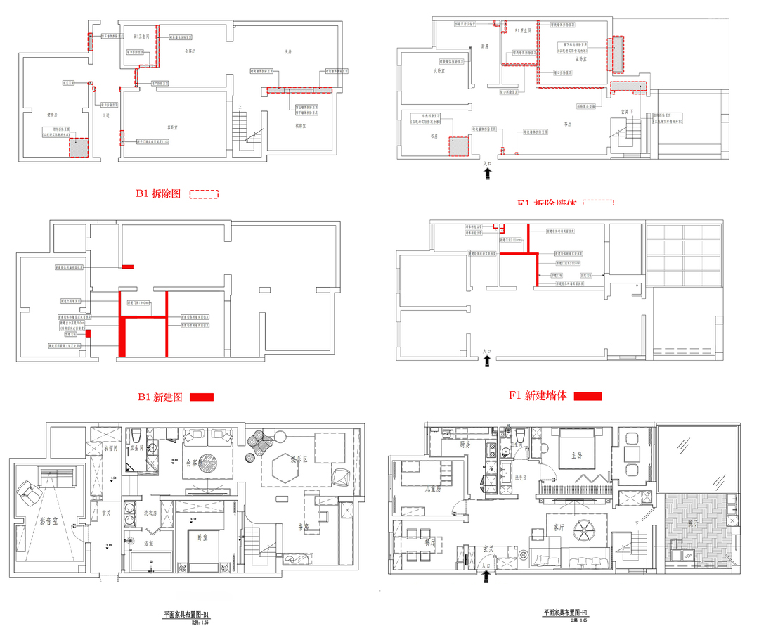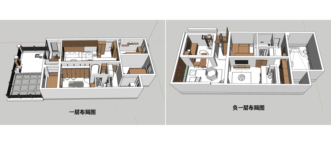 对于一家三口来说,没必要有过多的卧室空间,一层卫生间也不需要有淋雨功能。因此我们进行拆改。