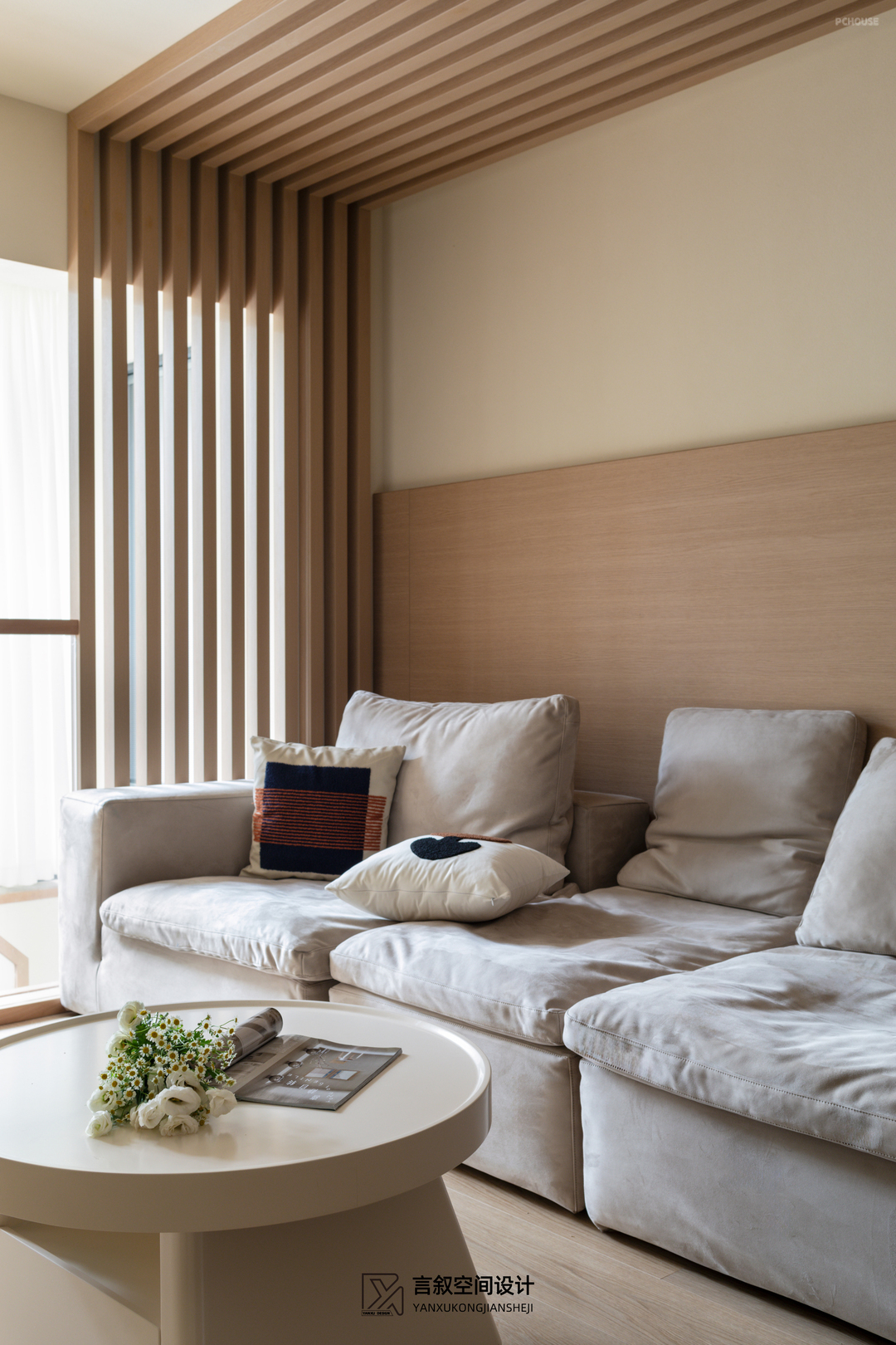 如果说玄关的松弛感是让归家的人儿慢下来,那客厅的松弛感则是居于其中,随处都是家的“沉浸感”。