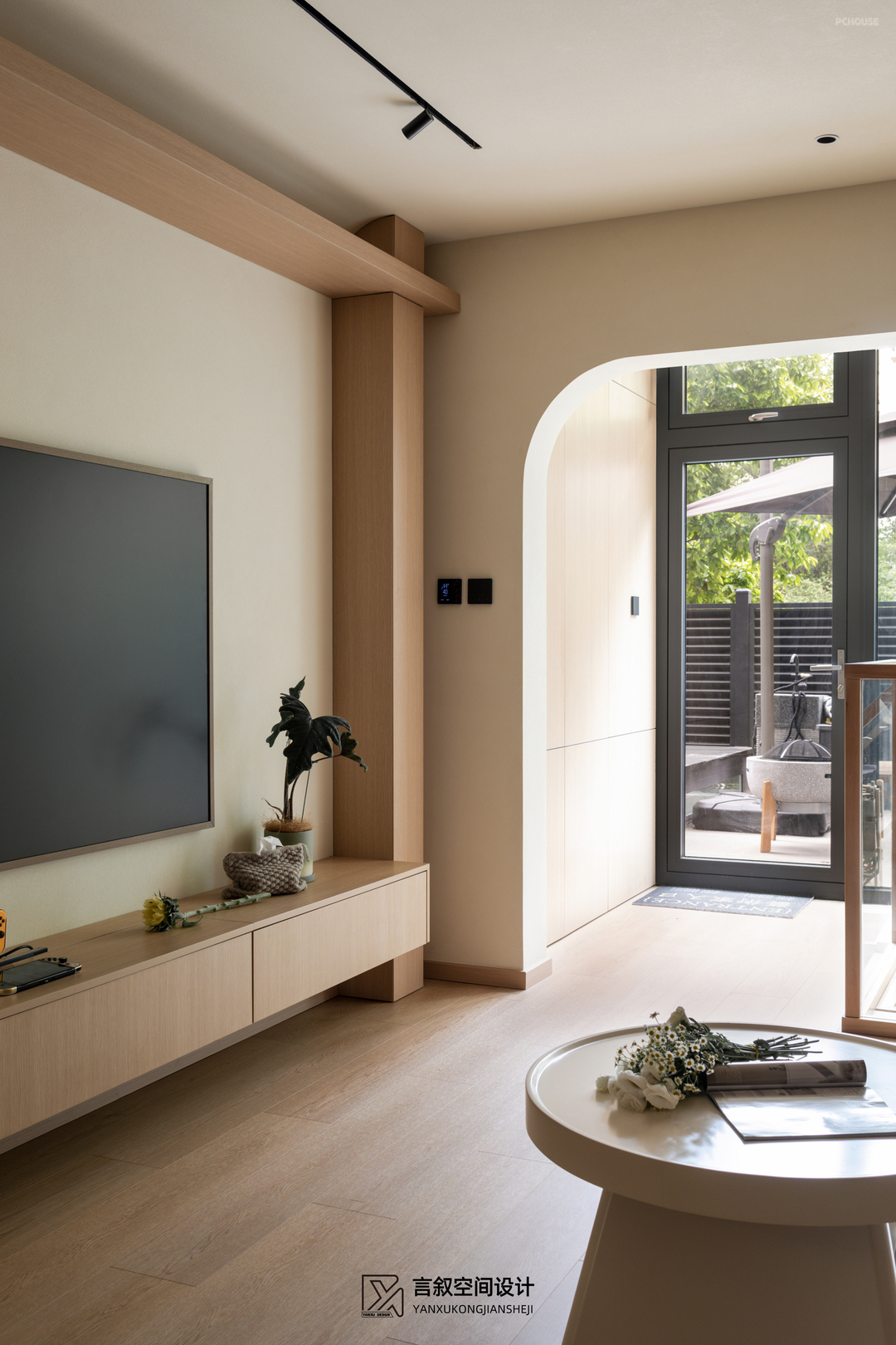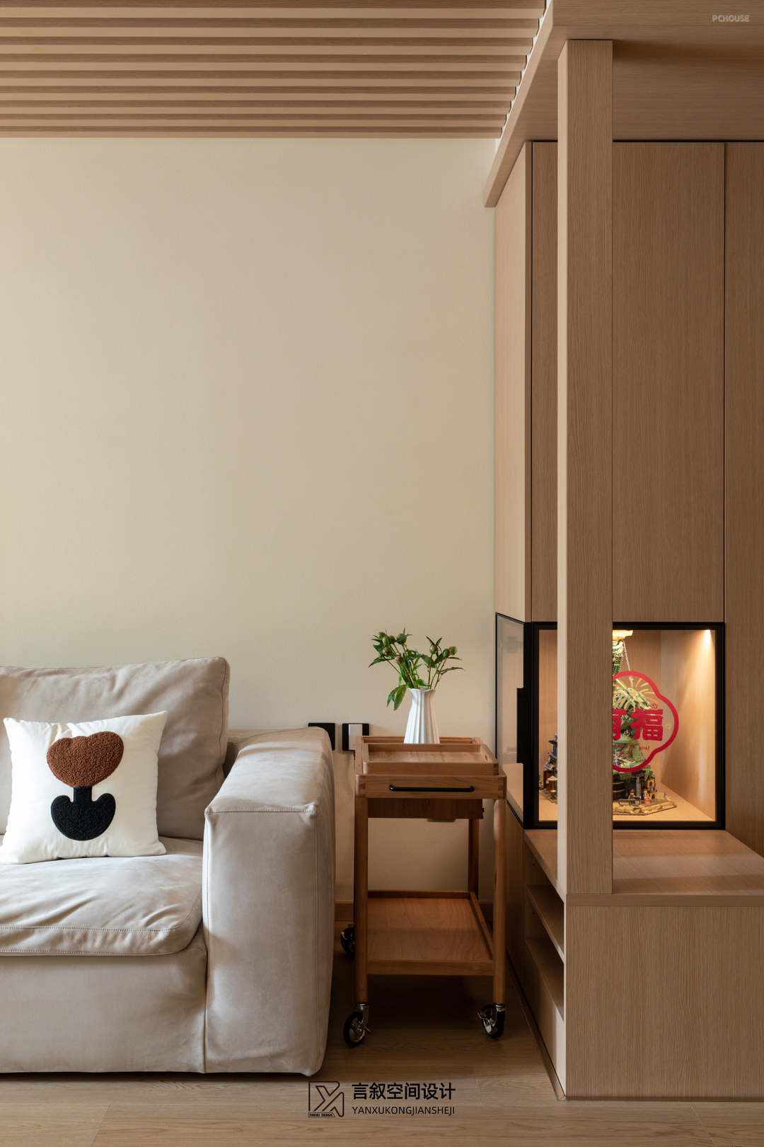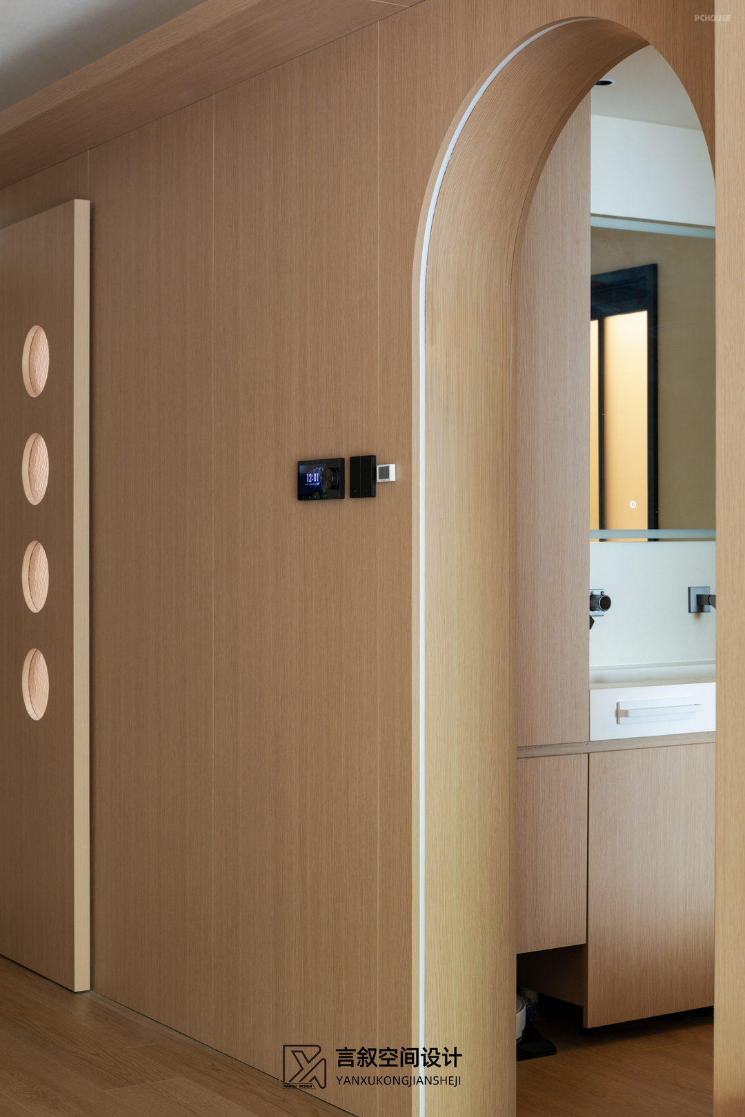用实木结构做框架装饰,圆弧型的垭口设计相结合,日式元素与现代元素得到恰当舒适的融合。