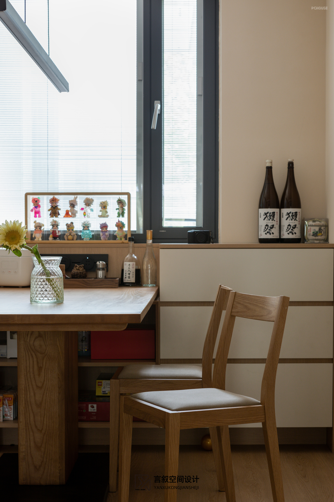 从设计风格和空间语言上,餐区并没有与客厅割裂,目之所及都是关联的、相同的。延续了业主我希望空间自由通透的设计美学。