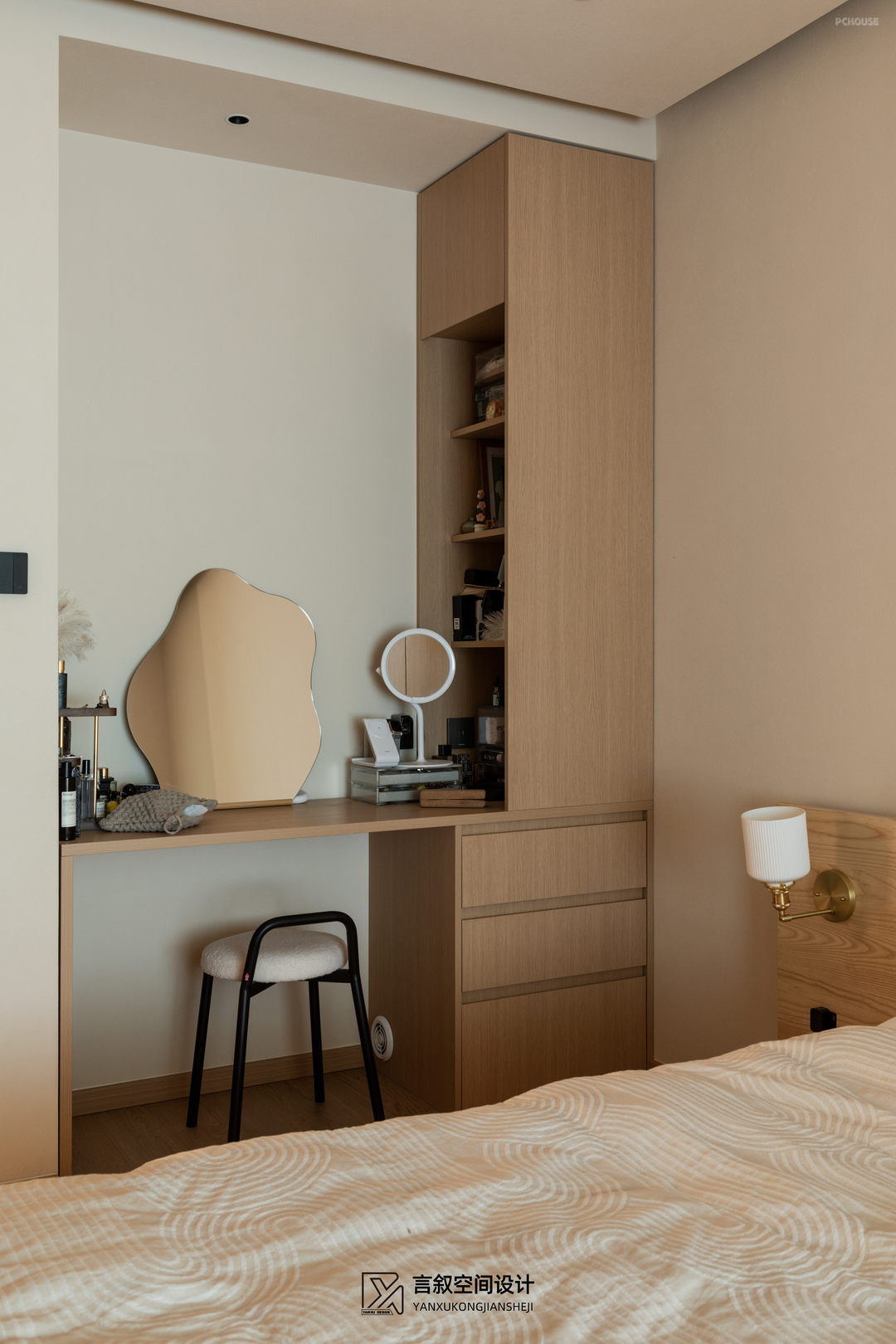 边吊隐藏新风空调,刚好宽度向下延伸定制梳妆台,立体统一。