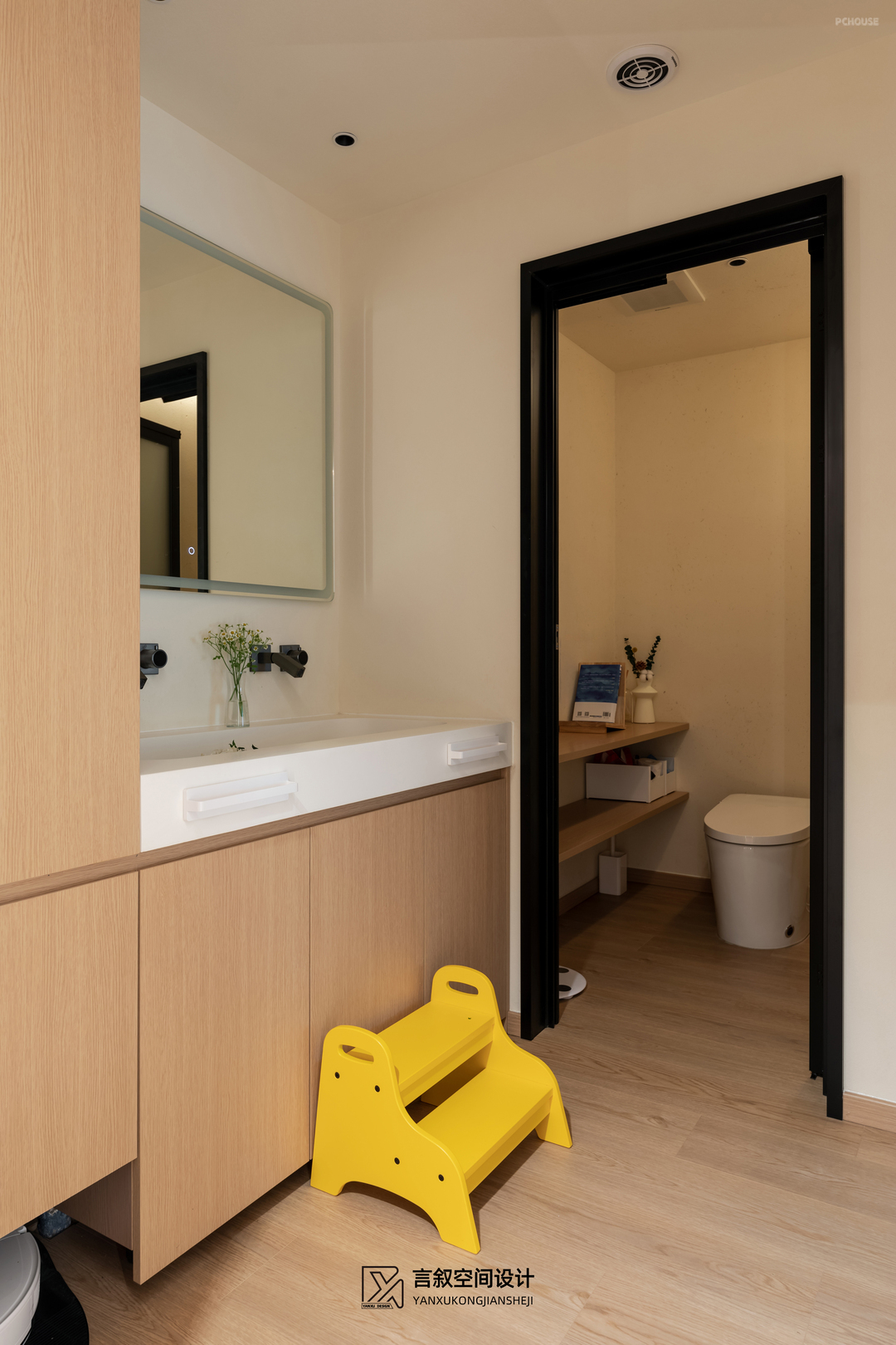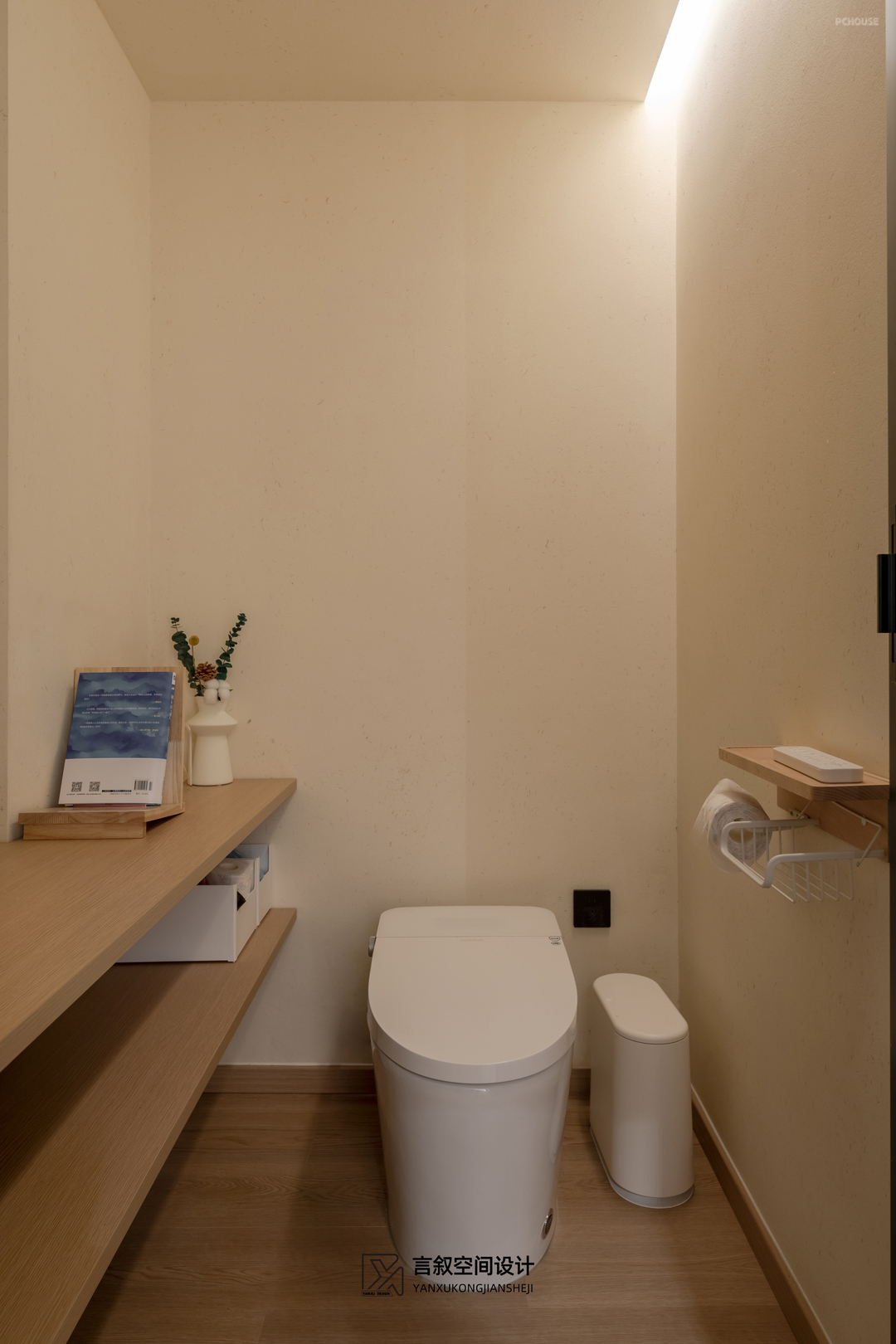 不同于其他家庭的马桶间,业主一家都有阅读习惯,所以在卫生间,我们也特意加入了便携式的阅读区。照明以主光和洗顶灯搭配,光线充足。