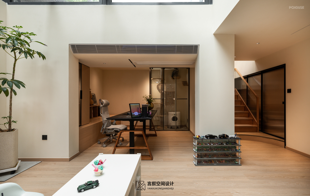 开放式的书房,让业主可以在办公过程中能随时看到孩子的动向,双向陪伴,增加更多的互动时间。
