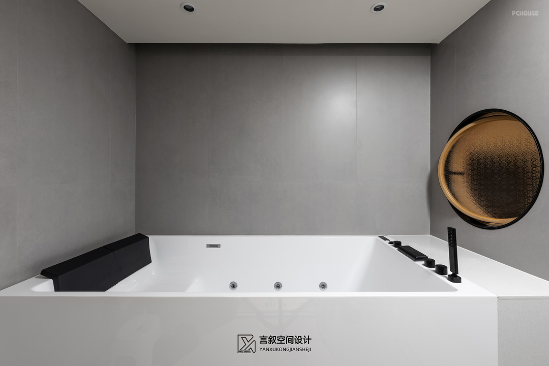 特意定制的超大浴缸,满足一家三口共同泡澡的需求。在家也能实现SPA自由。放松身心。