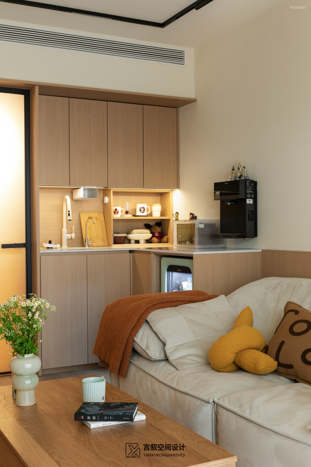 侧边开放式的茶吧区内嵌小冰柜,便捷实用。