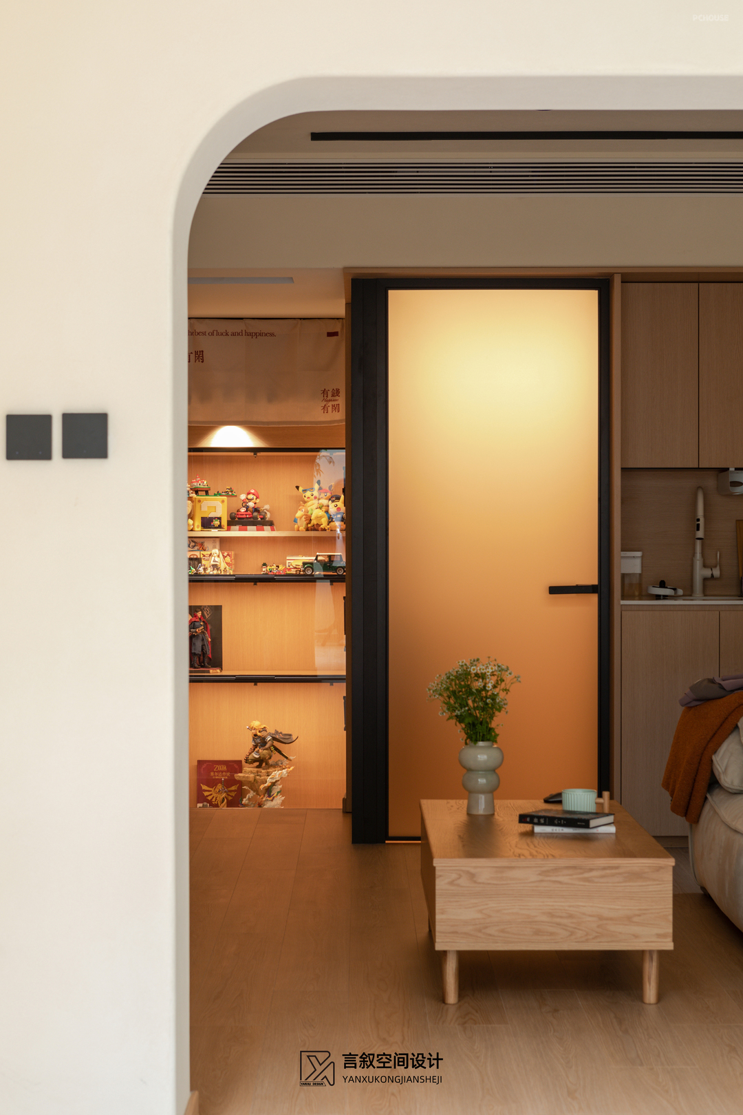 弧脚方形垭口设计,弱化了棱角的锋利感,采光最大限度的得到保留,也成为墙面的装饰品。