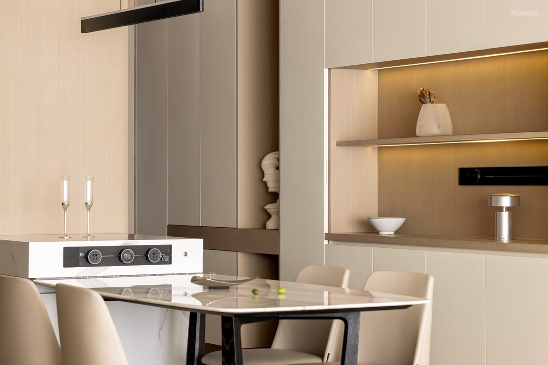 ③餐厅定制岛台,丰满功能,提升实用度。
