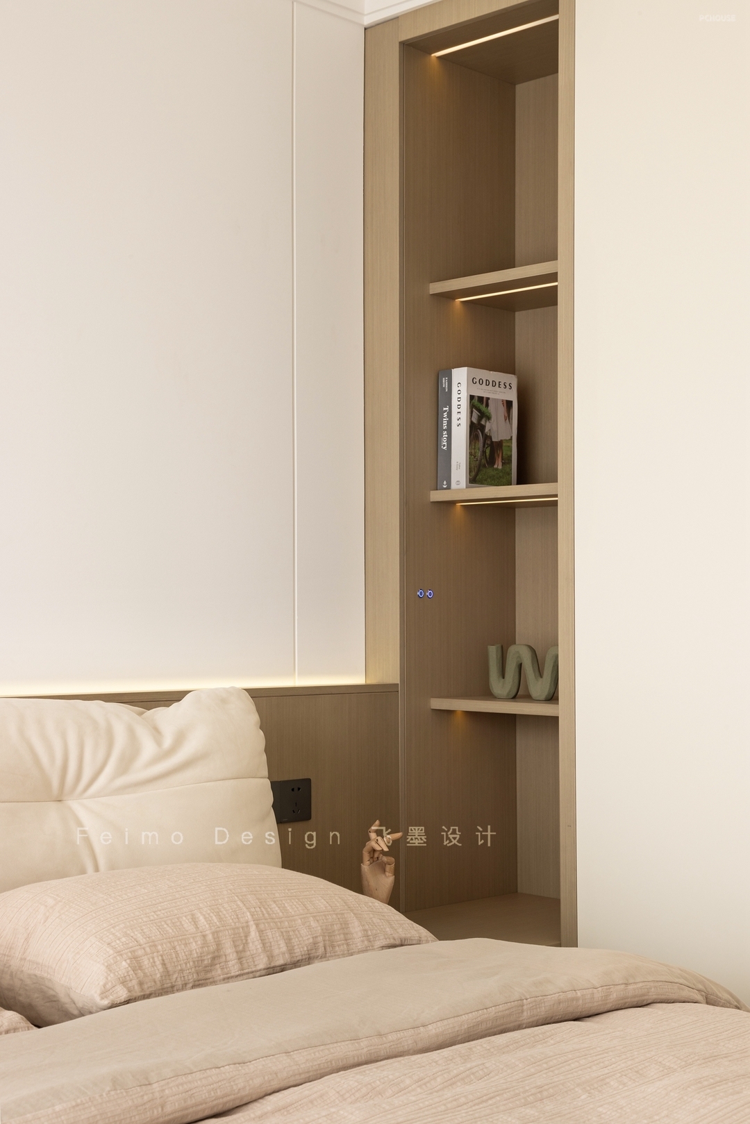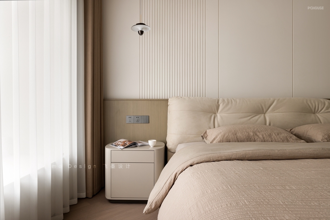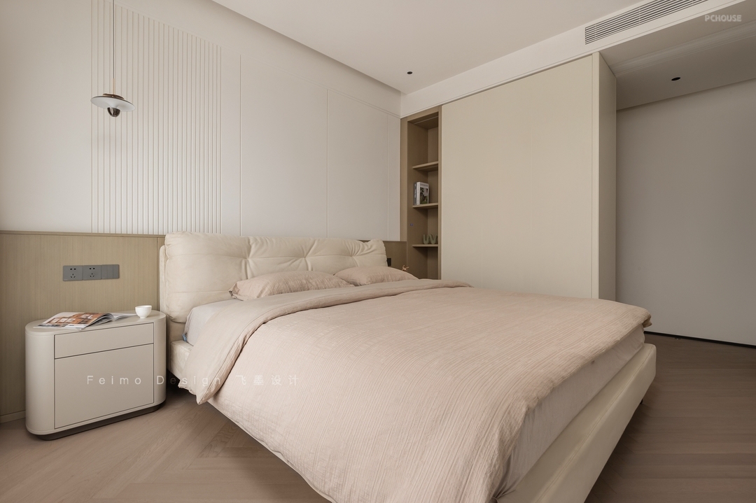 ②一层床头定制一体式床头柜,好用无卫生死角。