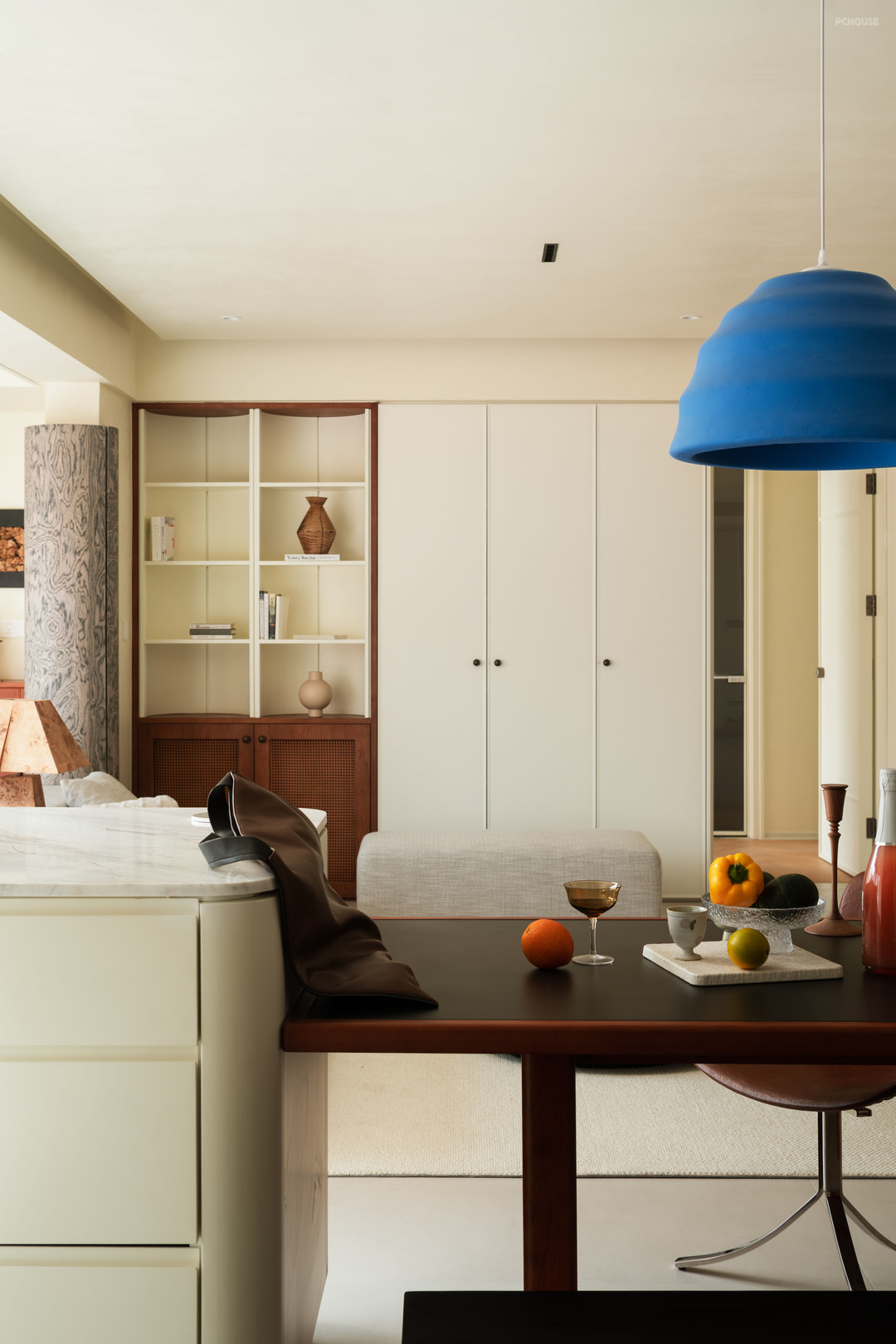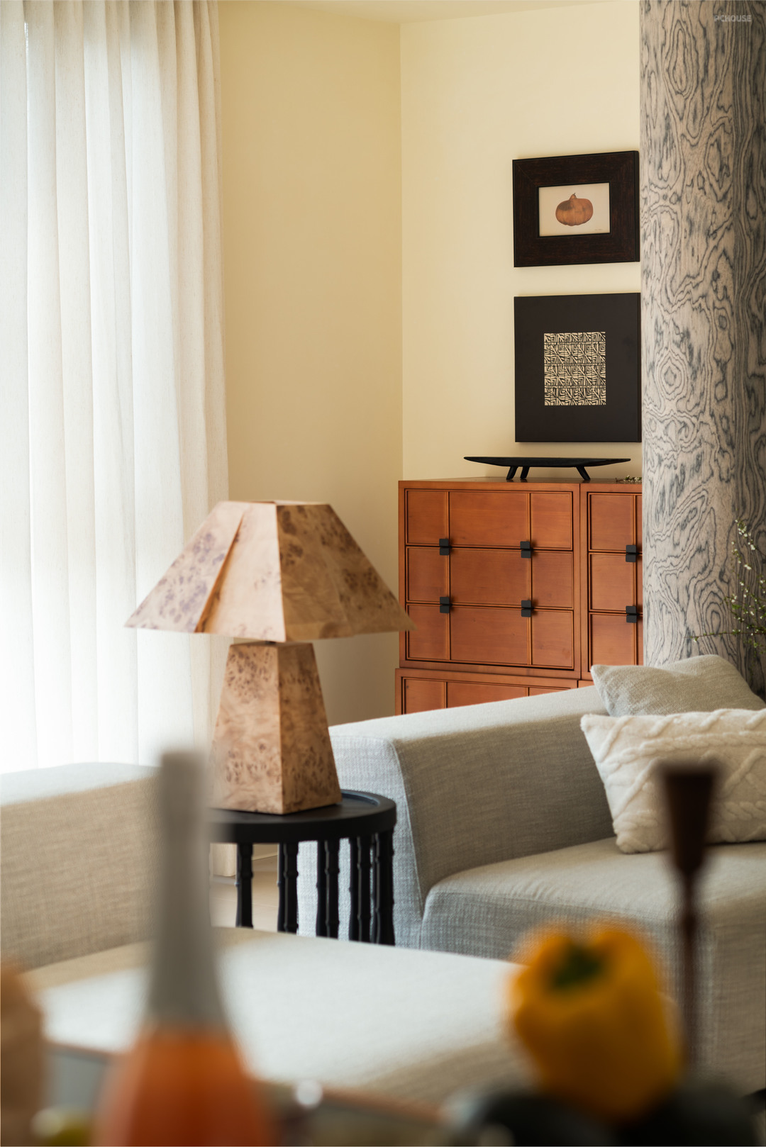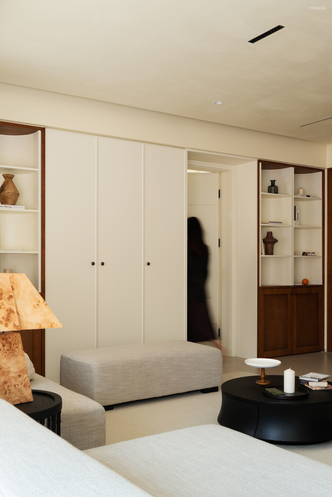 一家三口,喜欢舌战群雄的孩子,看报的爸爸,追剧的妈妈,他们的中心思想就是在家要随意,哪里都可以带上半天或躺或坐,随性而为之。家里的可变性很大,如果爸爸想晒太阳了,沙发可以合成背靠背沙发面对阳台沐浴阳光,此时一本我们的老院更是应景。当孩子想理清辩论赛的思路时,全家又可围合式坐一起聊着不同的观点与思路。周末妈妈只需抱着爱吃的薯片坐在地毯上享受此时属于自己的时光,一切的一切它是多变性也是随意性。