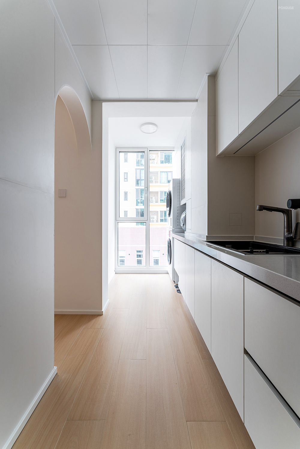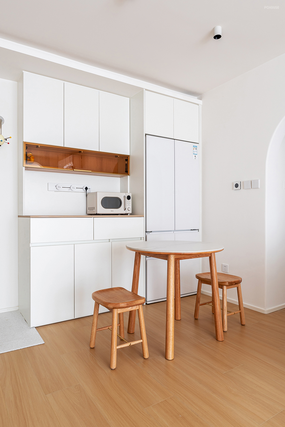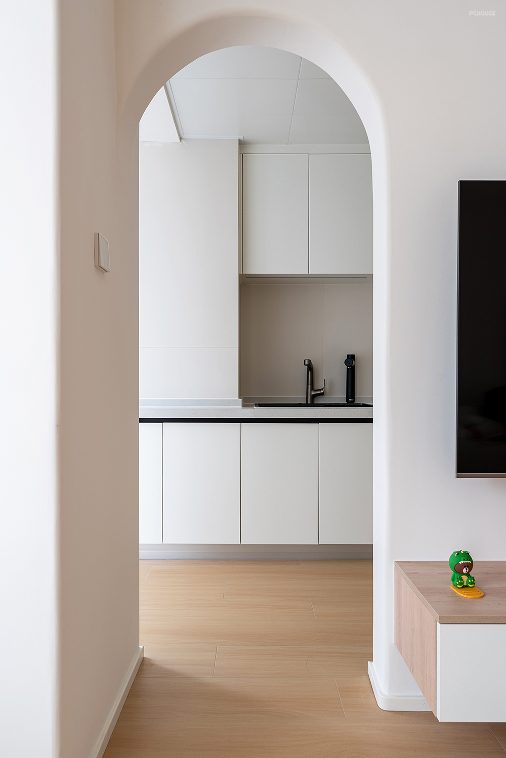 厨房的弧形门洞,真的是太美了。门洞包垭口套,用圆角处理了阳角部分,加上奶呼呼的漆直接通刷过去。温柔的气质,让动线变得丝滑通常,每次路过都会心动一下吧!