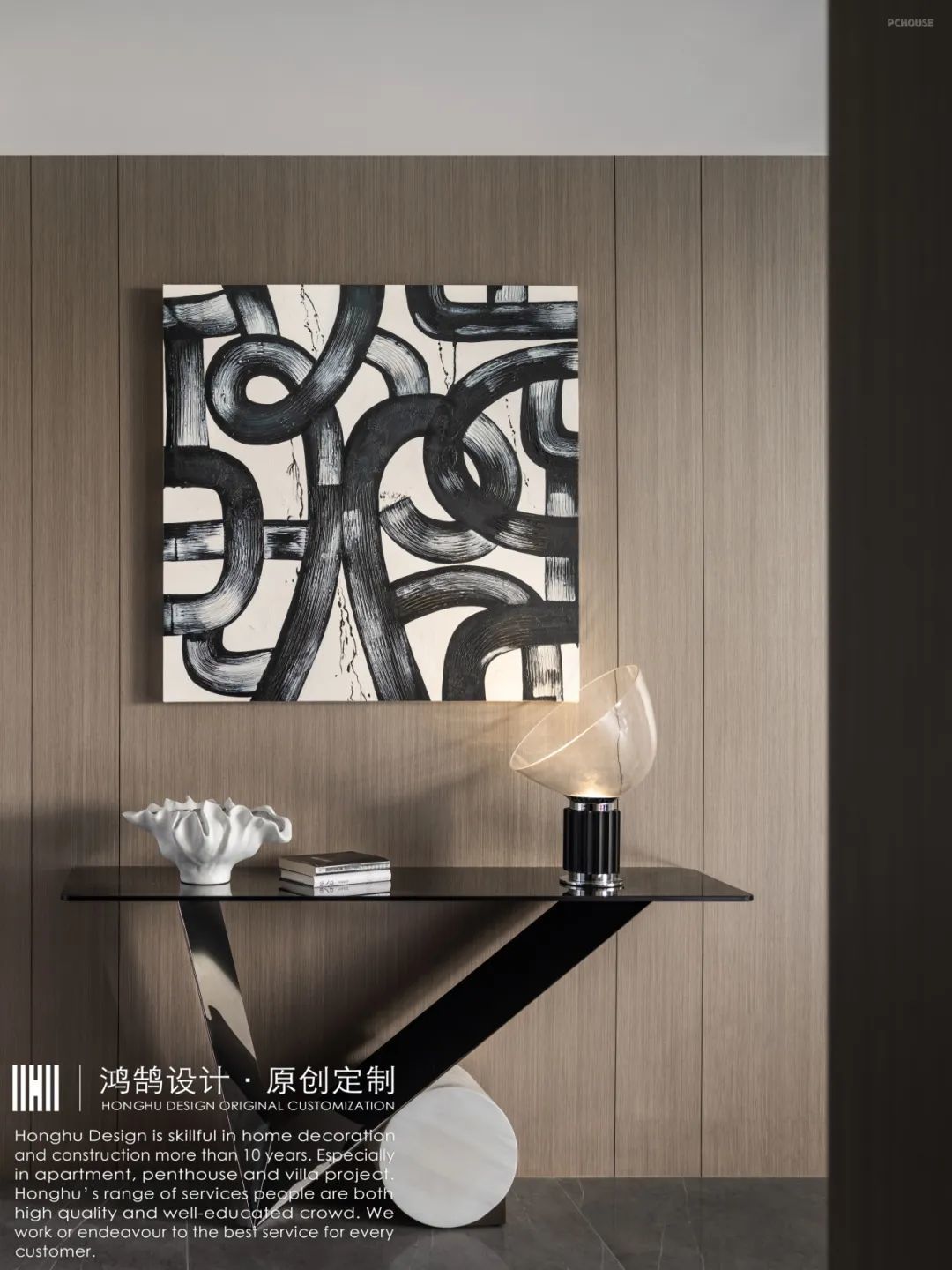 Nalentinox的玄关桌总让人想起阿基米德的那句“给我个杠杆,我能翘起整个地球”,玻璃的桌面,光可鉴人的支腿,似乎总能轻易的融入到各个环境中。