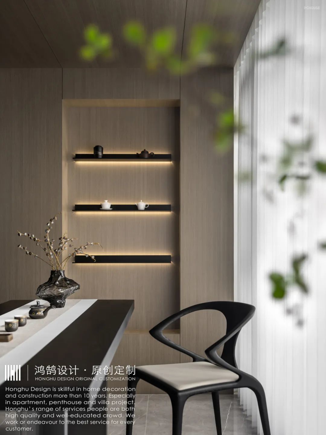 客厅阳台的区域,设计了一个休闲喝茶的区域,可以摆置业主喜欢的茶具,同时可以在这里和亲朋好友谈天说地。