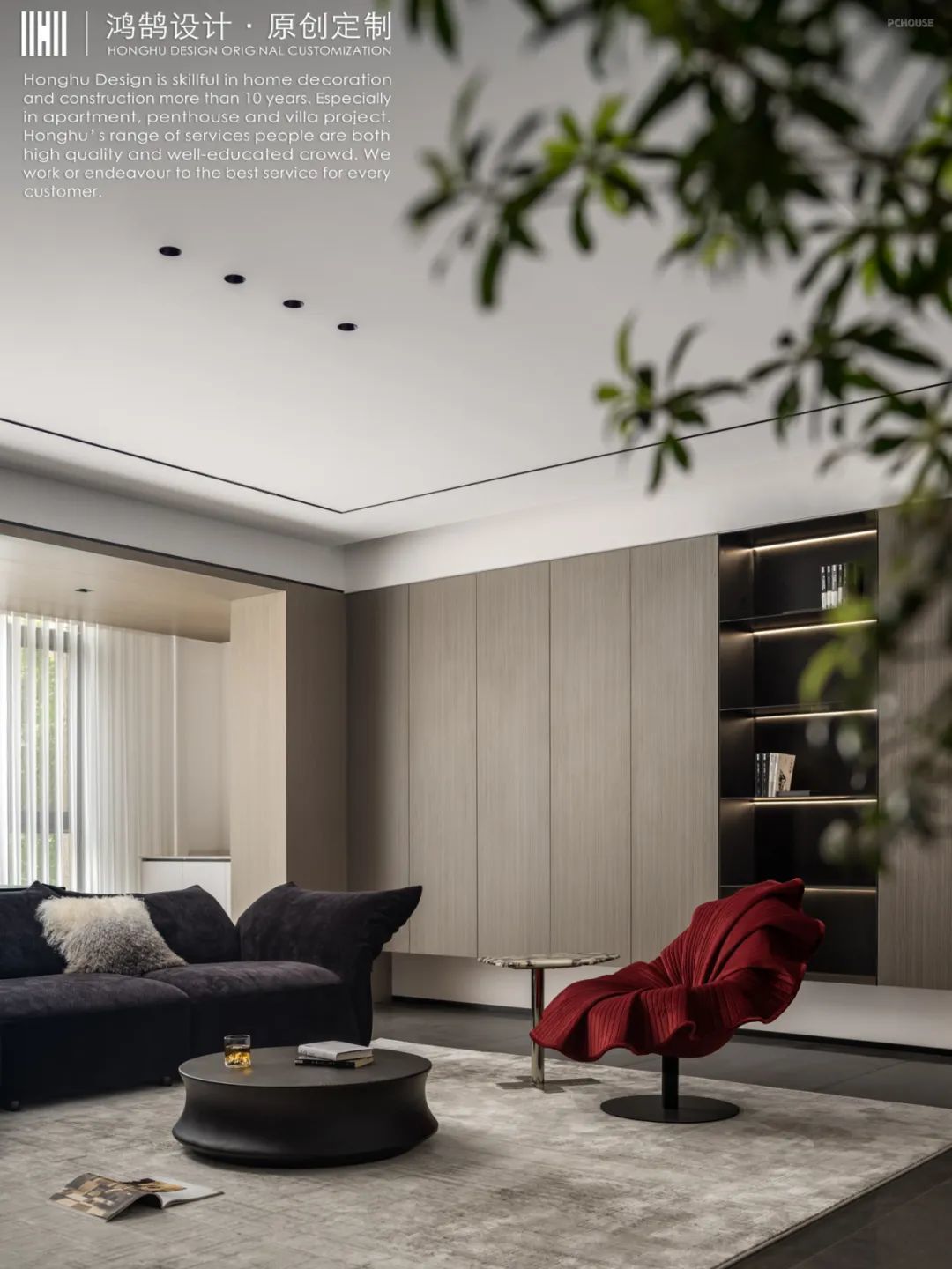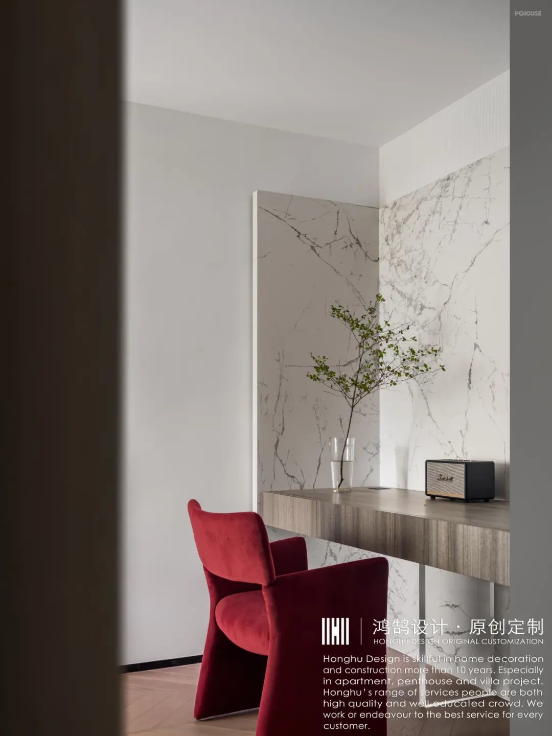 卧室这款鲜艳无比的椅子名为Crown Chair的皇冠椅,开放的背部设计加饱满的软垫,但椅子的重量较低,靠背位于扶手上,看似没有支撑,实际上依靠坚固的隐藏式钢接头。无论它被放在什么位置,都是一处亮点。