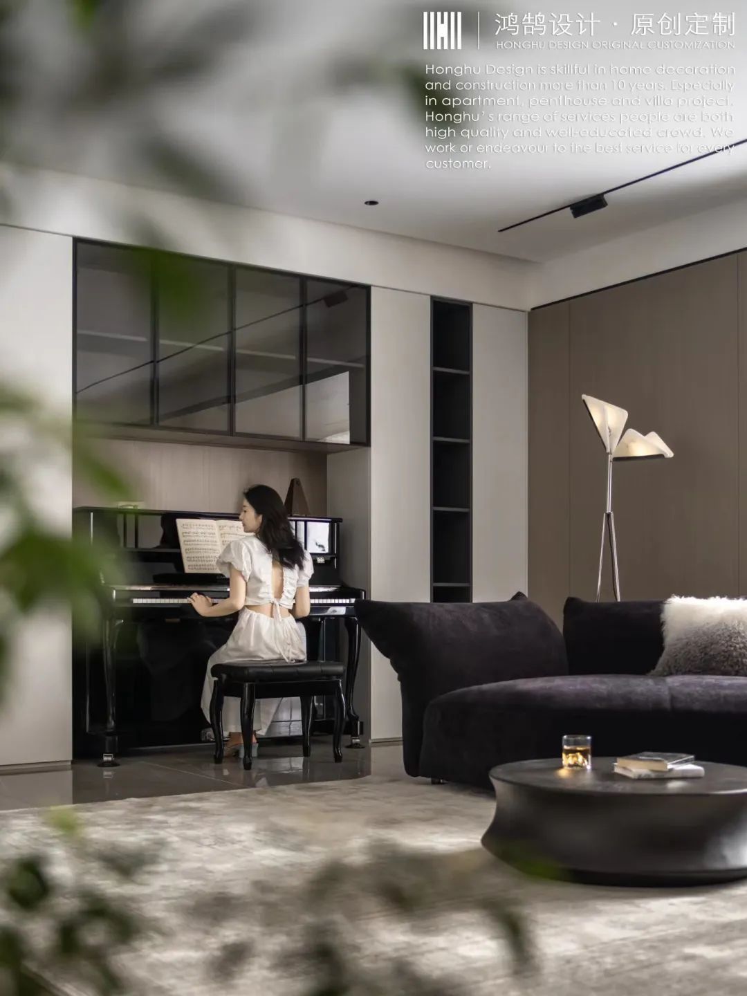 在客厅的位置放置了女业主的钢琴,在闲暇之余,可以陶冶心情,客厅就是承载整个家快乐愉悦的地段。