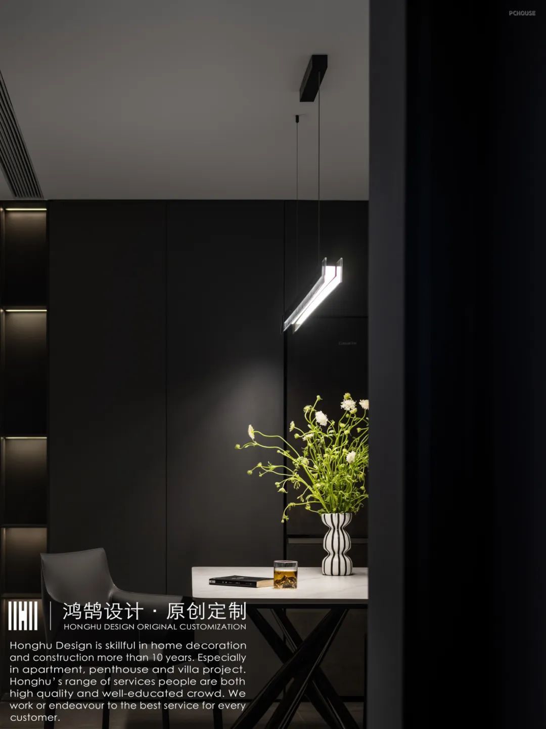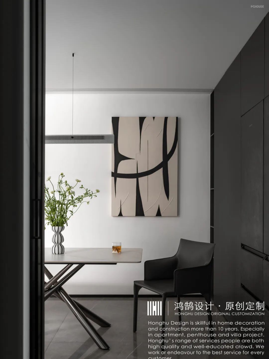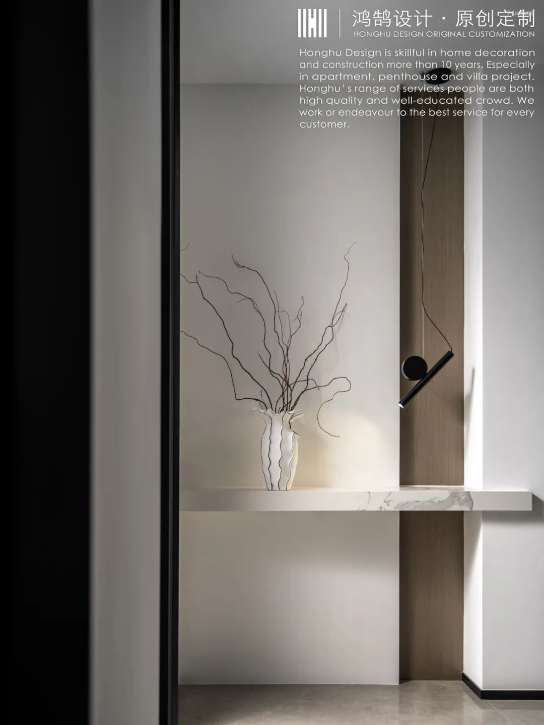 #原先这块区域是餐厅拐角处,有裸露的水管,设计师通过设计把这一块,设计成了一个端景,平时可以摆放花瓶,赏心悦目。