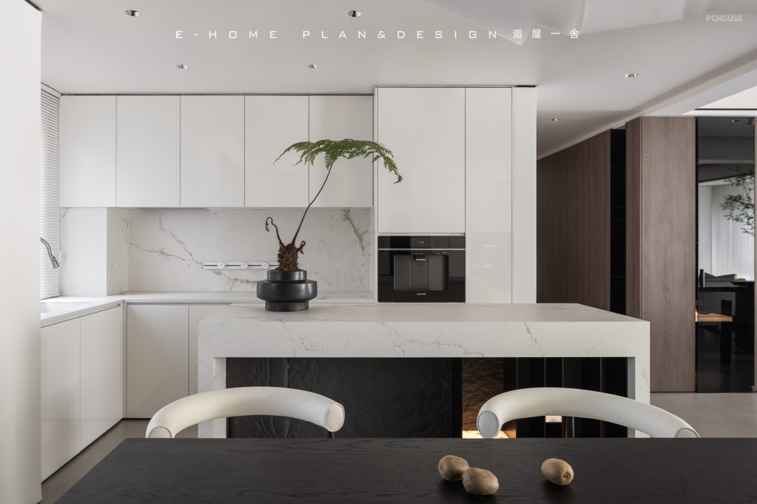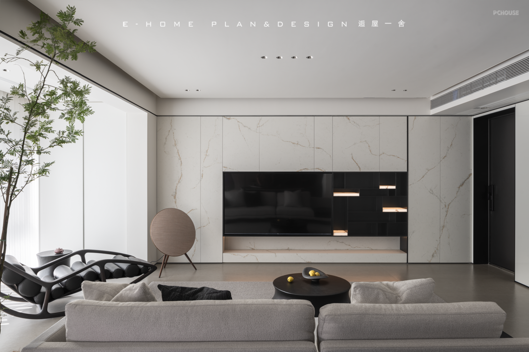 岩板柜门藏起整个客厅收纳,文雅的笔触跟随柜门的纹理而走,哑光质感为空间带来的好处是肌肤感流动,自然放松。这里不仅成为了很好打理的客厅,也能让亲朋好友们产生无拘无束的空间治愈感受。